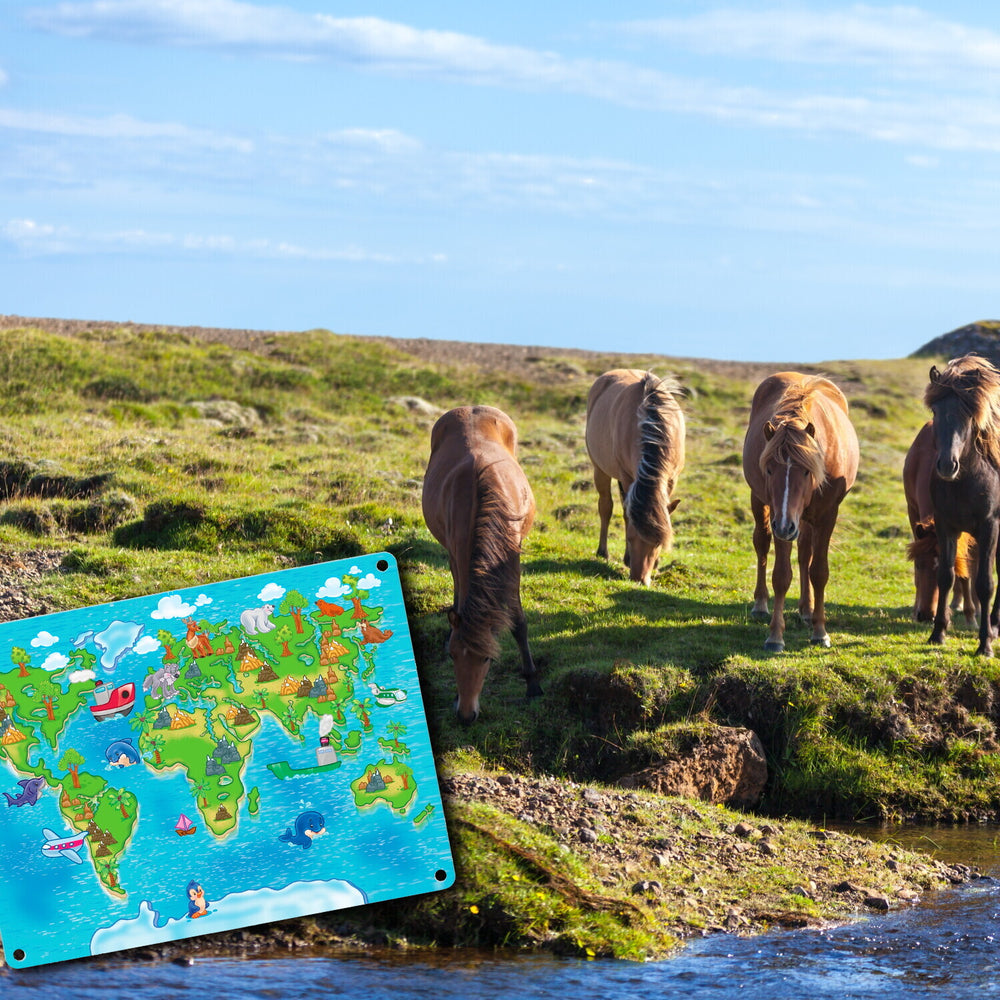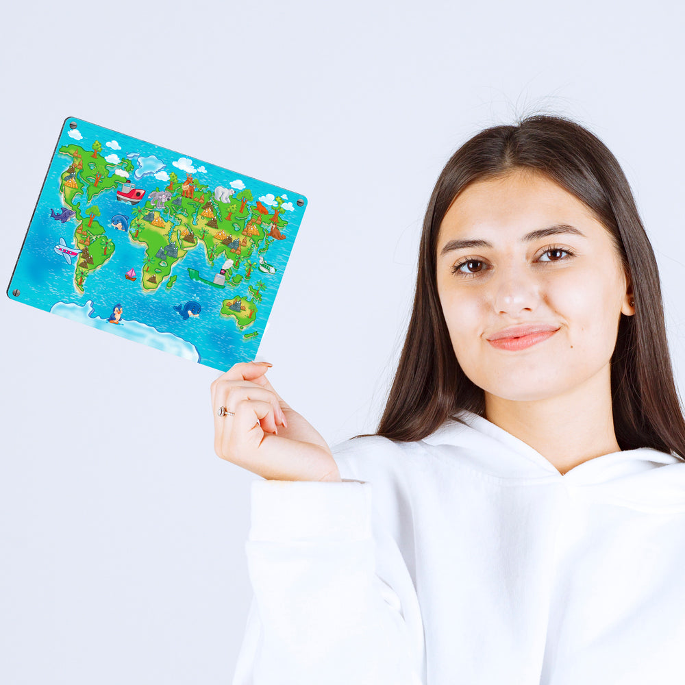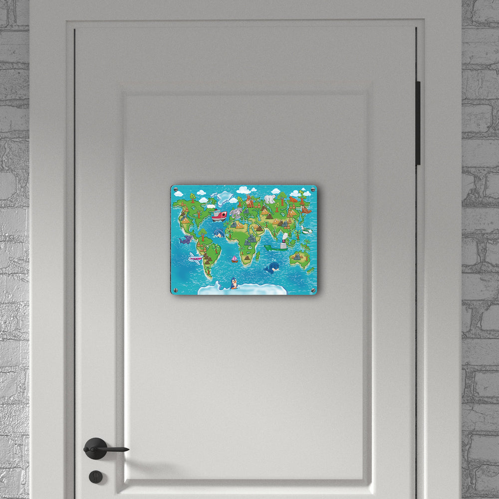 • 1x Kinder Weltkarte Metallschild in der gewählten Größe