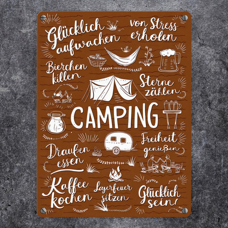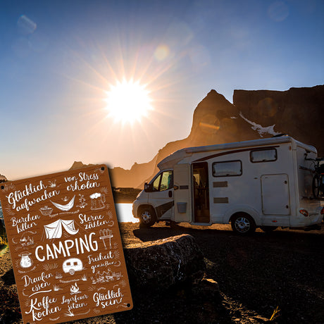 Ab €8,95Grundpreis /Nicht verfügbarAuf LagerCamping Metallschild in 15x20 cm mit Spruch Glücklich sein, Freiheit genießen, Sterne zählen