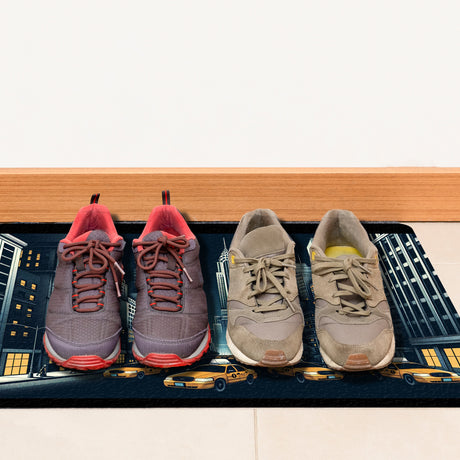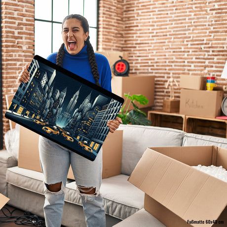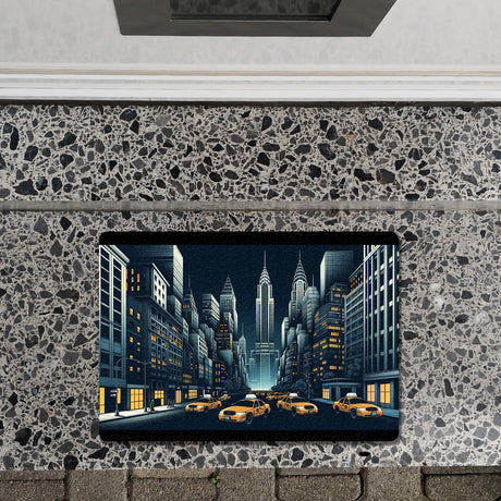 New Yorker Häuserschlucht und Taxis Fußmatte in 35x50 cm ohne Rand