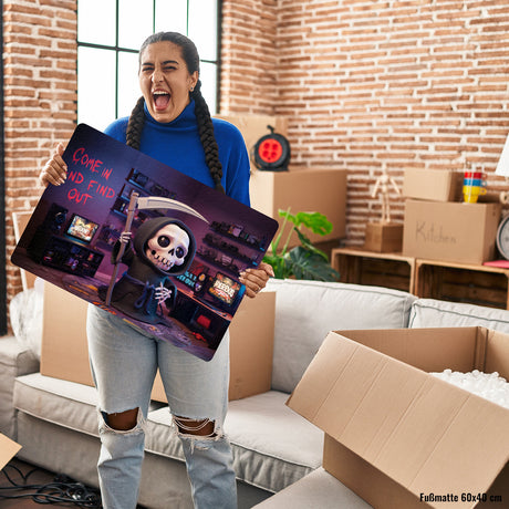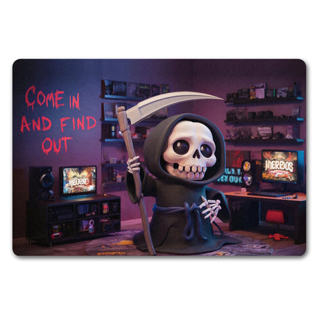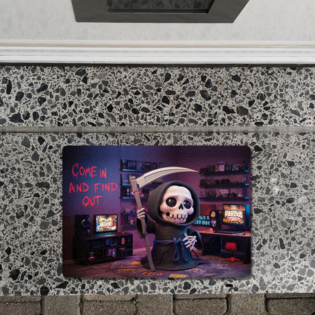 Ab €16,95Grundpreis /Nicht verfügbarAuf LagerSkelett des Sensenmanns Zocker Fußmatte in 35x50 cm ohne Rand - Come in and find out