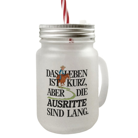 Ab €2,95Grundpreis /Nicht verfügbarAuf LagerReiter Spruch Trinkglas mit Bambusdeckel Ausritte sind lang