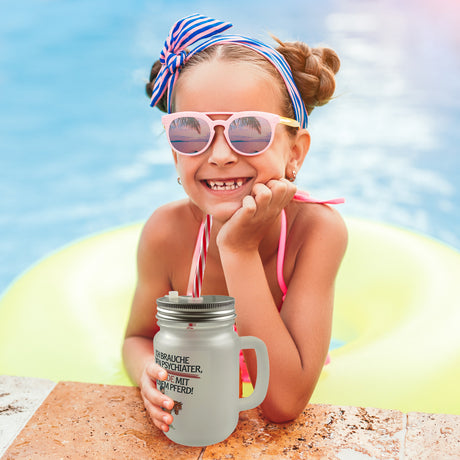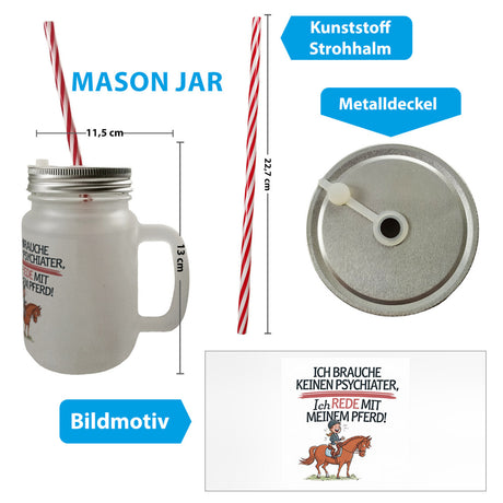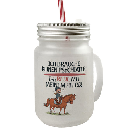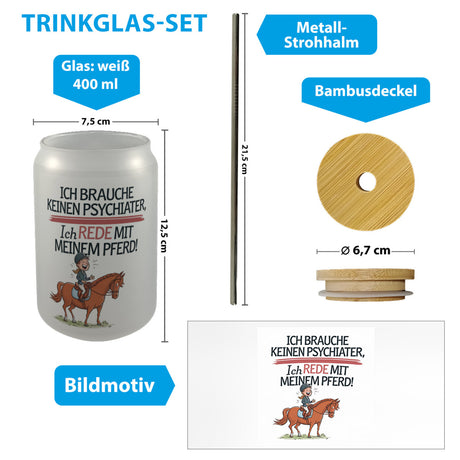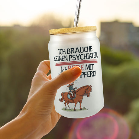 €9,95Grundpreis /Nicht verfügbarAuf LagerBrauche keinen Psychiater Trinkglas mit Bambusdeckel Rede mit meinem Pferd