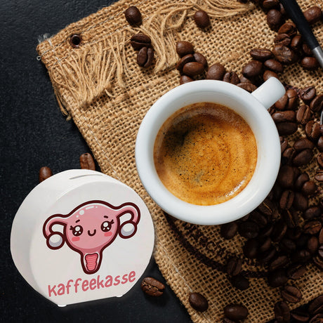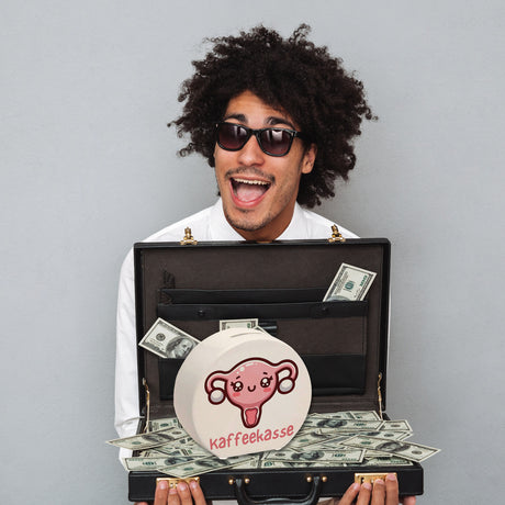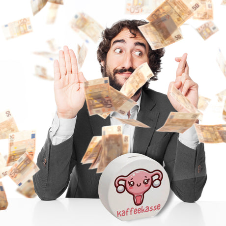 Dackel mit Schleife Spardose mit Spruch Kaffeekasse