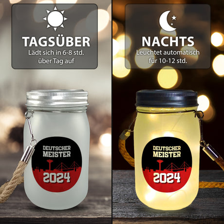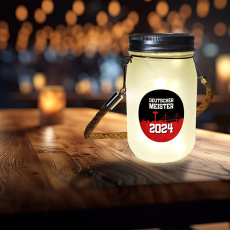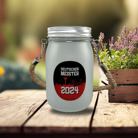 Leverkusen Solarlicht mit Spruch Deutscher Meister 2024