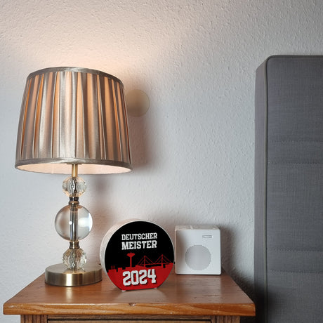 €11,95Grundpreis /Nicht verfügbarAuf LagerLeverkusen Trinkglas mit Bambusdeckel mit Spruch Deutscher Meister 2024