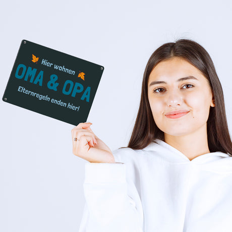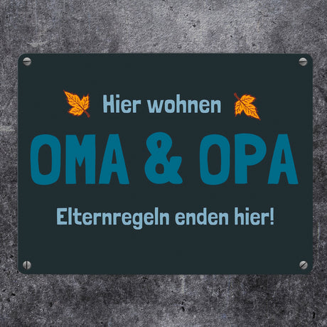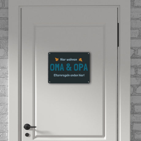 - Hier wohnen Oma & Opa - Elternregeln enden hier! Metallschild Ab €8,95Grundpreis /Nicht verfügbarAuf Lager
