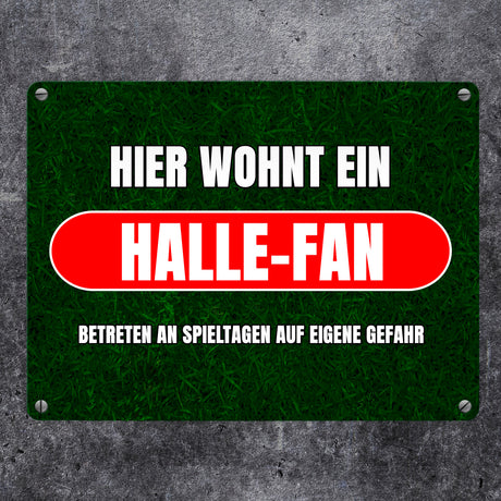 - Hier wohnt ein Halle-Fan Metallschild in 15x20 cm mit Rasenmotiv Ab €8,95Grundpreis /Nicht verfügbarAuf Lager