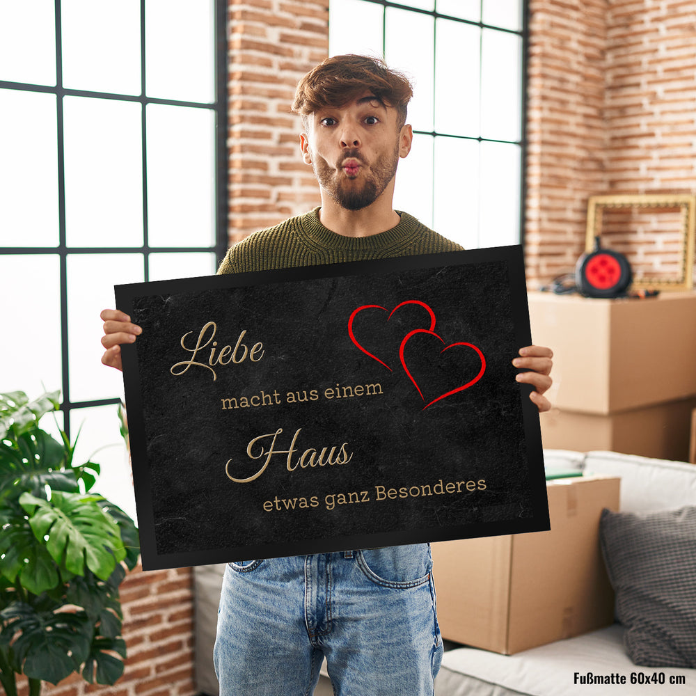 - Liebe macht aus einem Haus etwas ganz Besonderes. Mit dieser Fußmatte hat man eine schöne Begrüßung an der Wohnungs- und Eingangstüre.