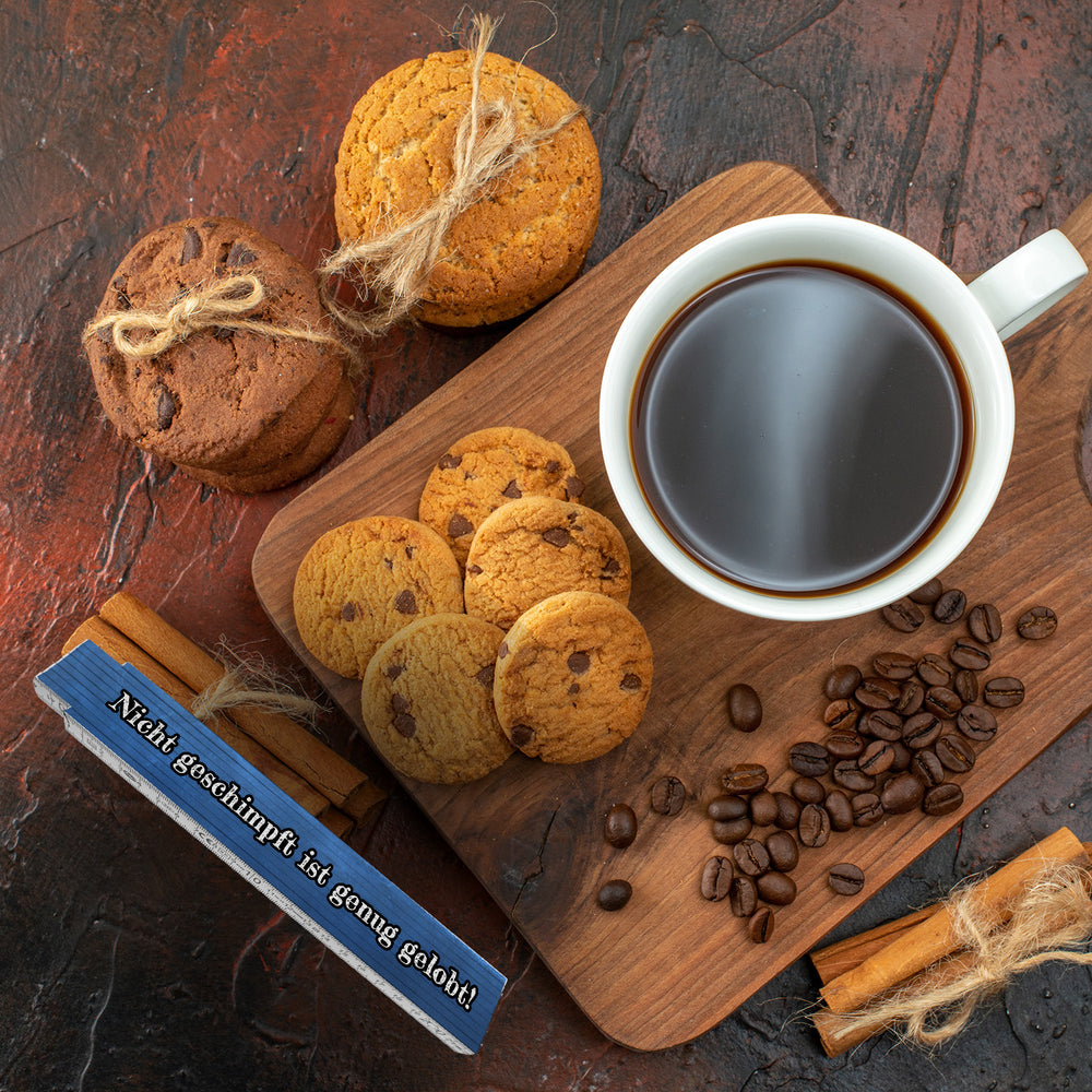 Nicht geschimpft ist genug gelobt! Meterstab aus Holz mit Marmoroptik in Blau