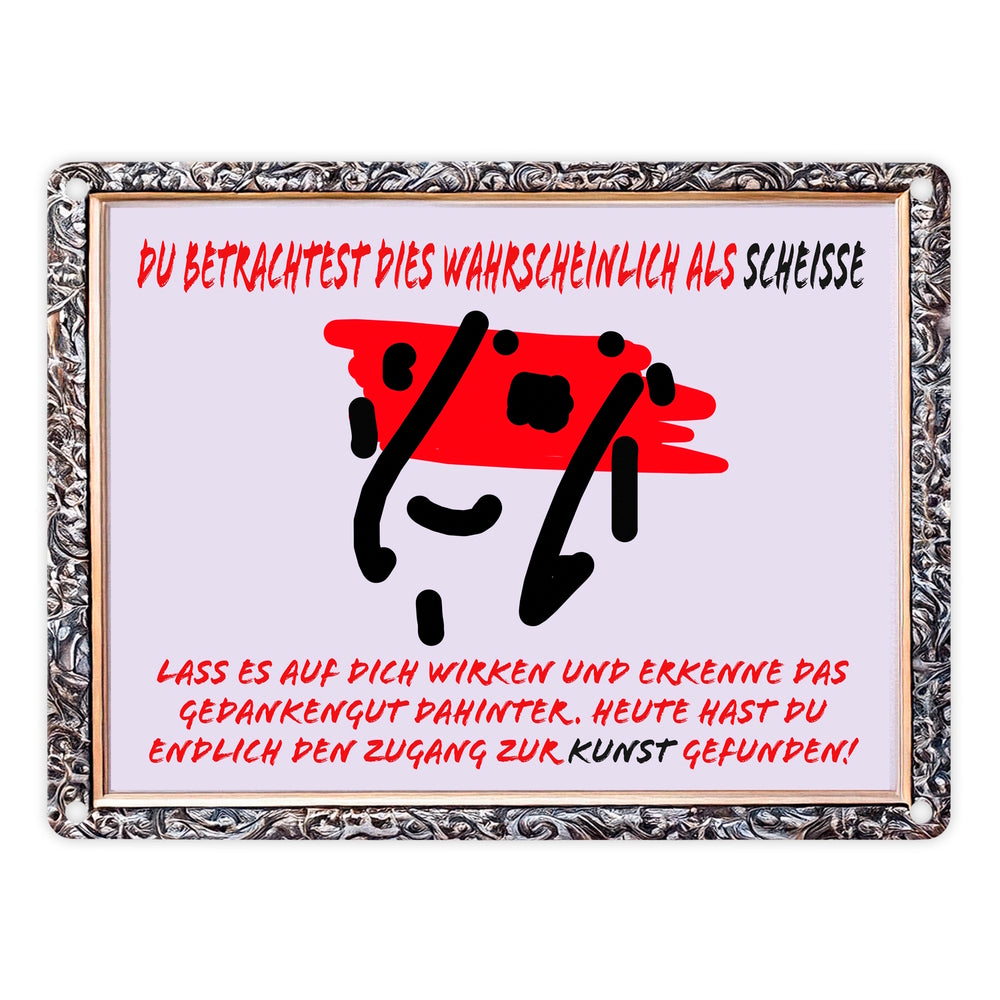 - Dieses Metallschild ist der Schlüssel zur modernen Kunst! Mit einem frechen Spruch und einer abstrakten Zeichnung im Bilderrahmen holst du dir einen Hauch von Chaos und Genie ins Haus. Wer hätte gedacht, dass ein Schild so tiefsinnig sein könnte? Ideal für Kunstliebhaber mit Sinn für Humor!