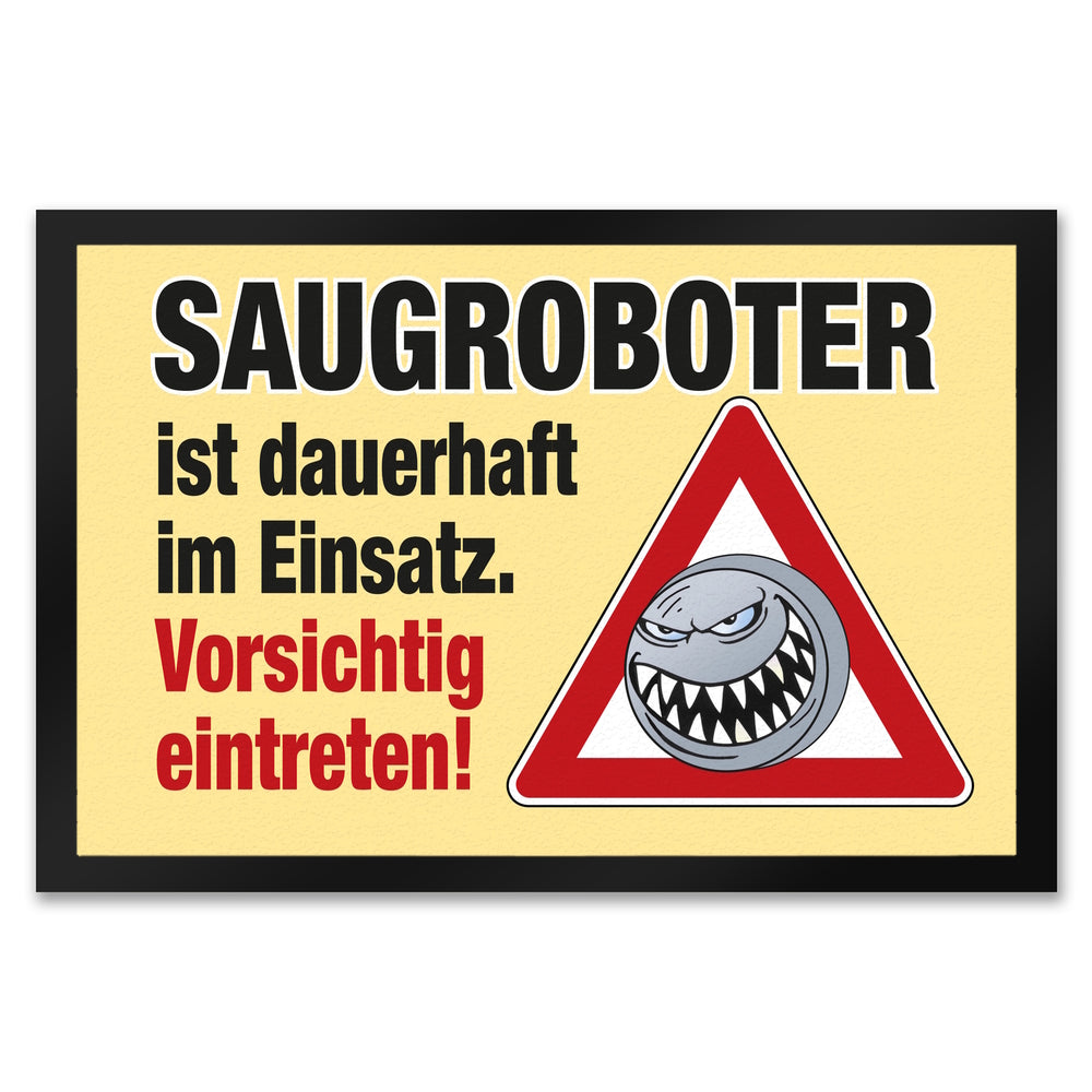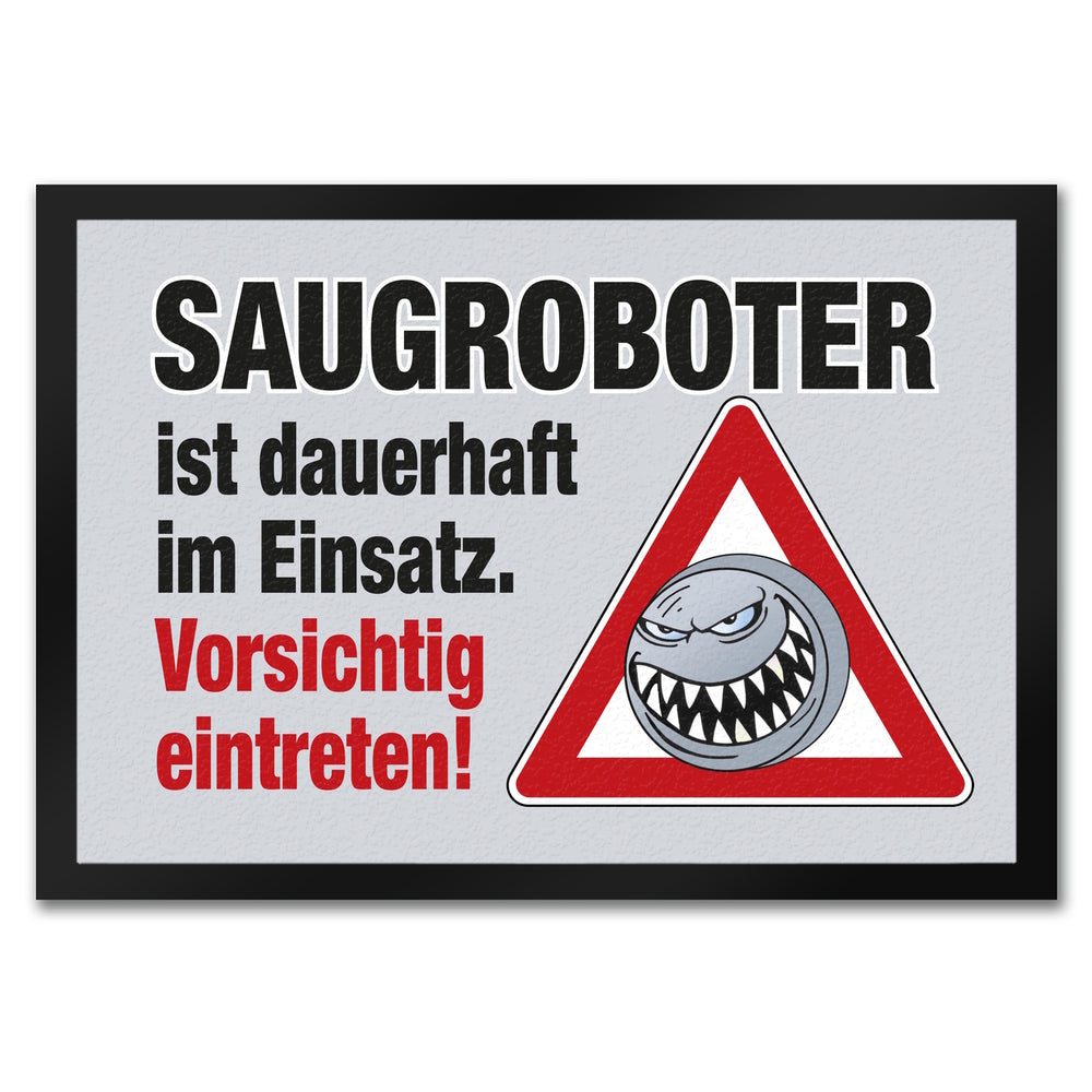 - 1x Saugroboter im Einsatz Fußmatte mit Spruch Vorsichtig eintreten! in der gewählten Größe