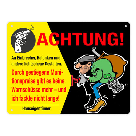 - Einbrecher Metallschild in 15x20 cm mit Spruch Achtung An Einbrecher und Halunken Ab €8,95Grundpreis /Nicht verfügbarAuf Lager