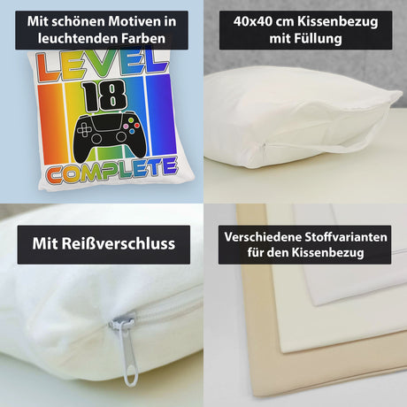 Ab €12,95Grundpreis /Nicht verfügbarAuf Lager18. Geburtstag Gamer Kissen mit Spruch Level 18 complete