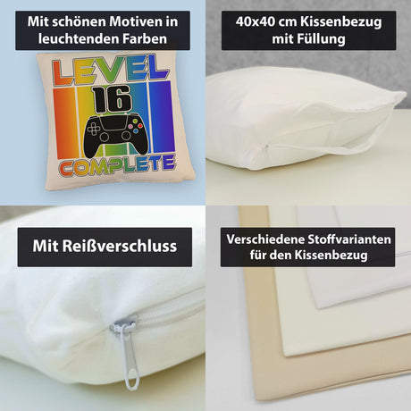 Ab €16,95Grundpreis /Nicht verfügbarAuf Lager16. Geburtstag Gamer Kissen mit Spruch Level 16 complete