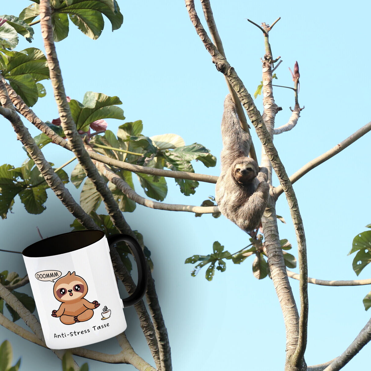 - 1x Anti Stress Faultier Kaffeebecher in der gewählten Ausführung