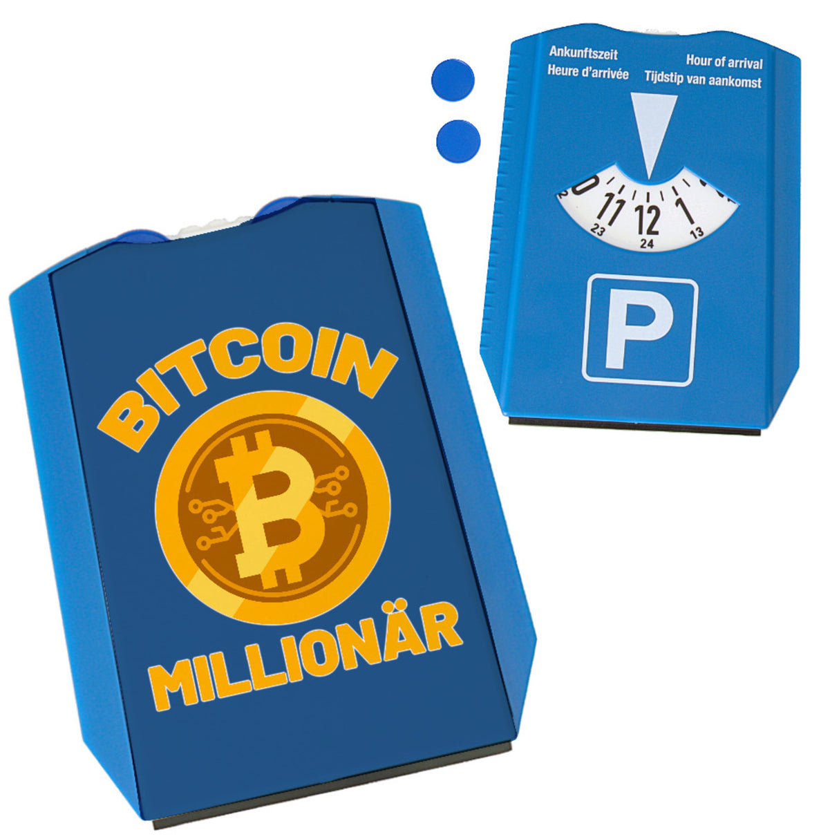 Bitcoin Millionär Parkscheibe mit Kryptowährung