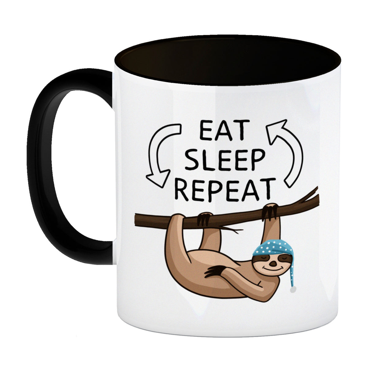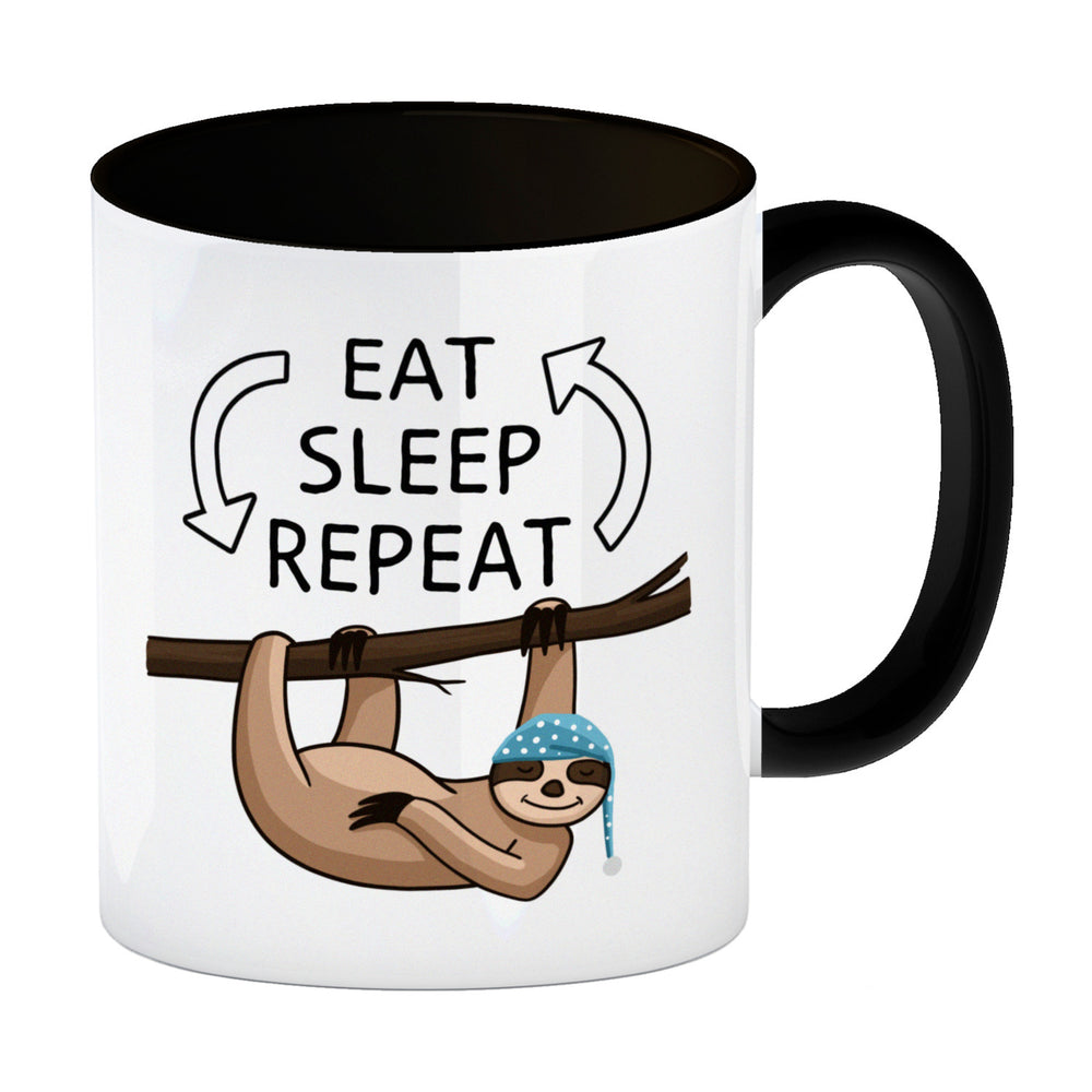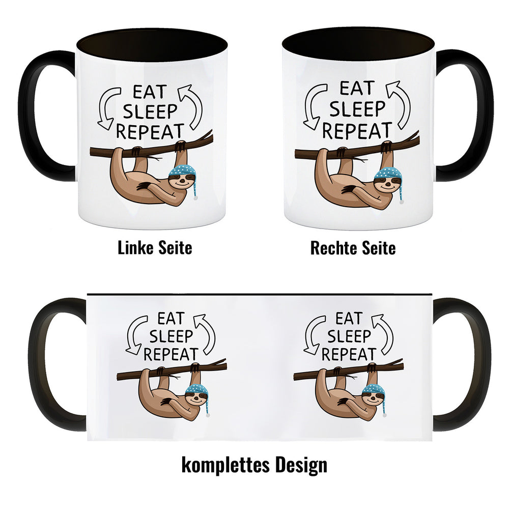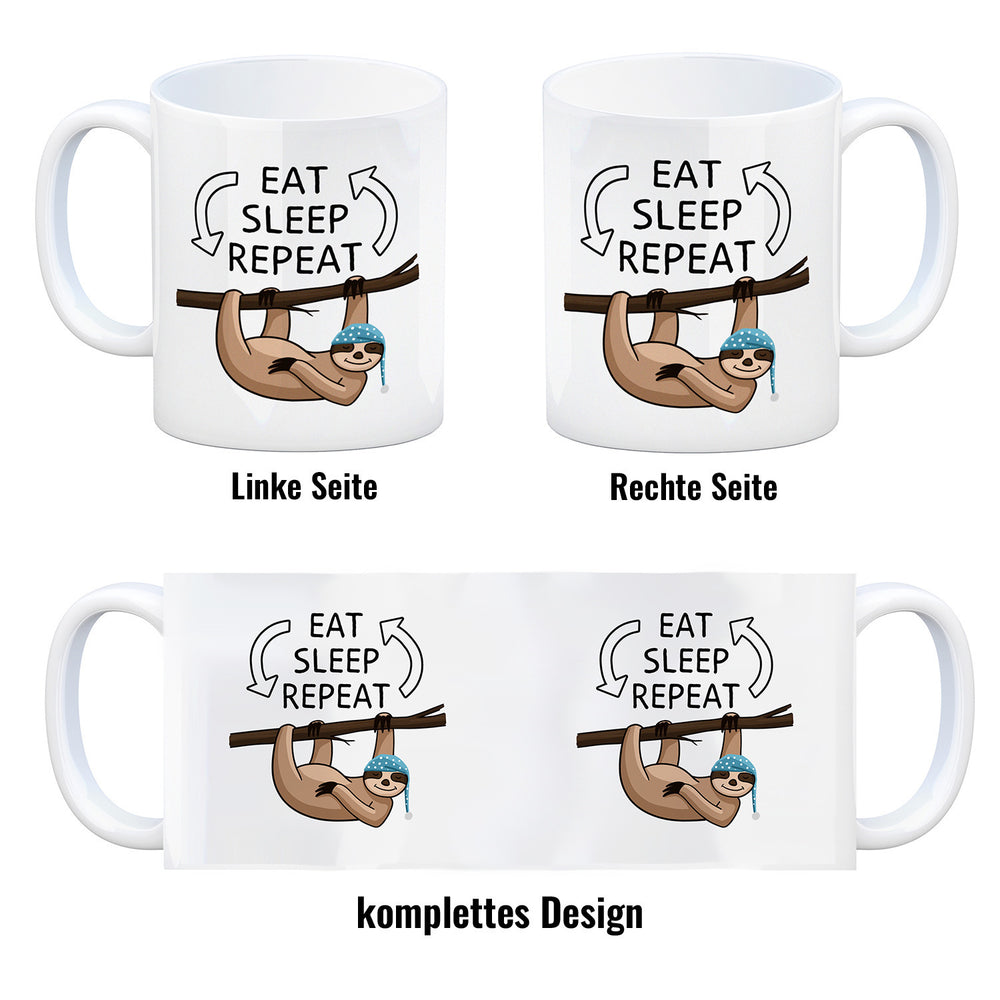 • 1x Eat sleep repeat Faultier Kaffeebecher in der gewählten Ausführung