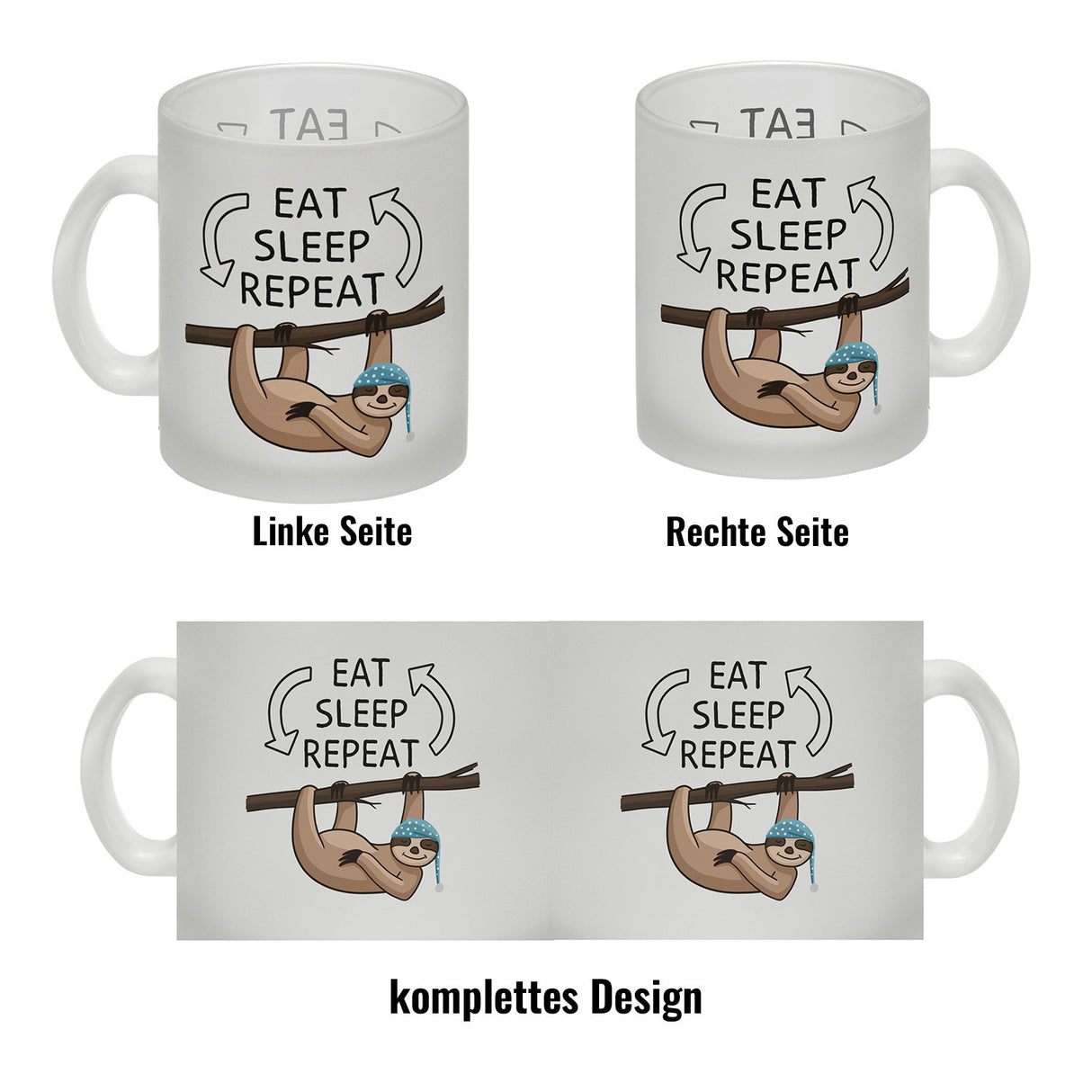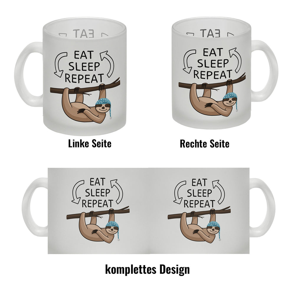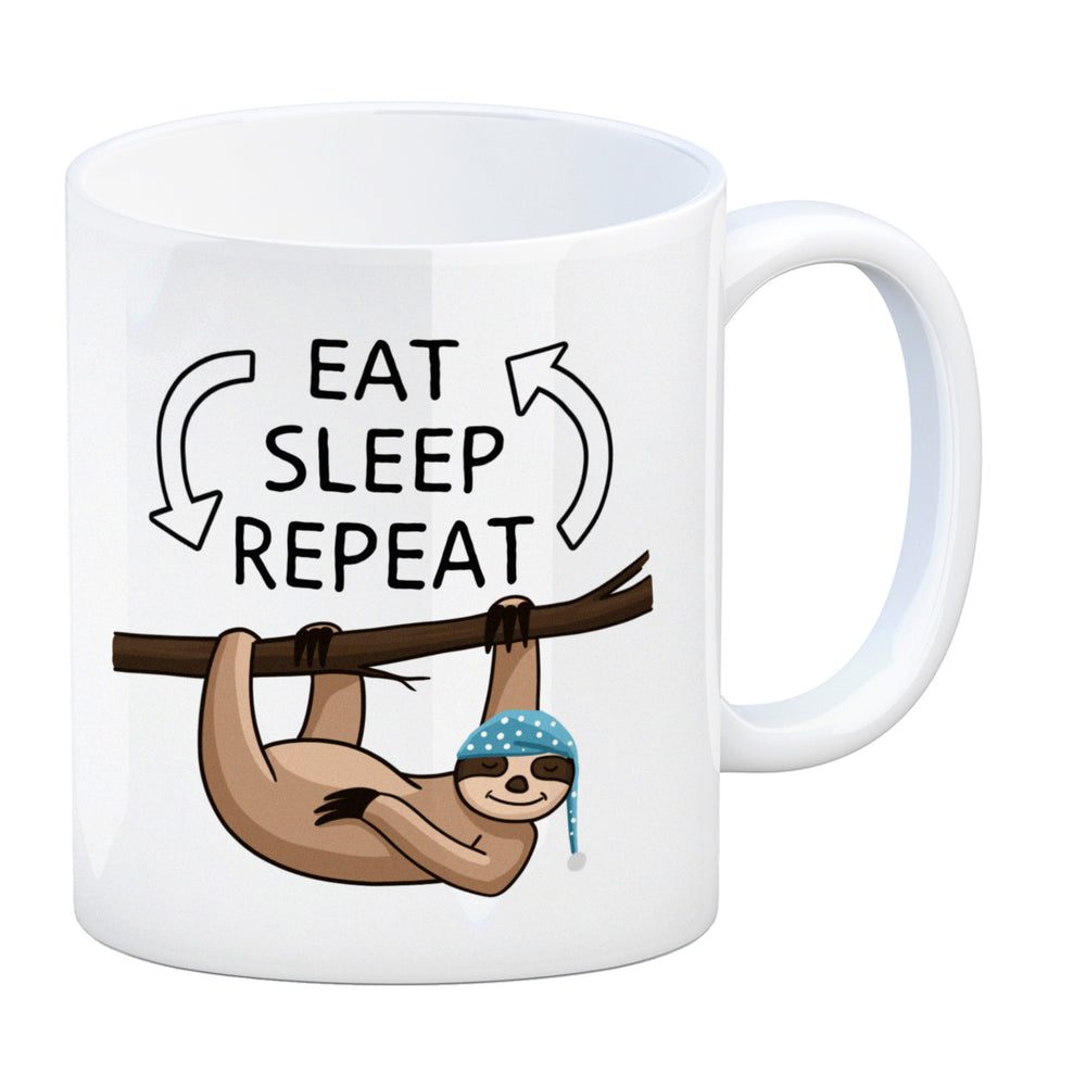 • 1x Eat sleep repeat Faultier Kaffeebecher in der gewählten Ausführung