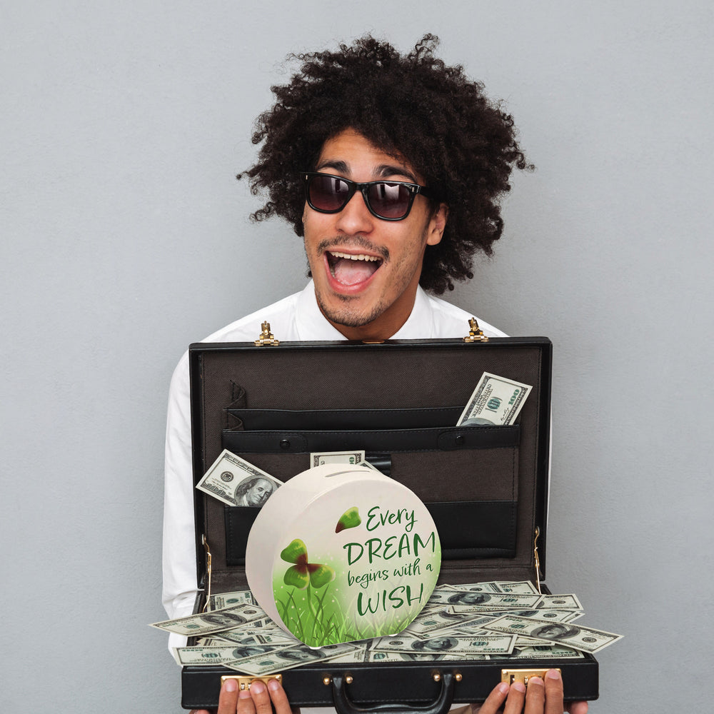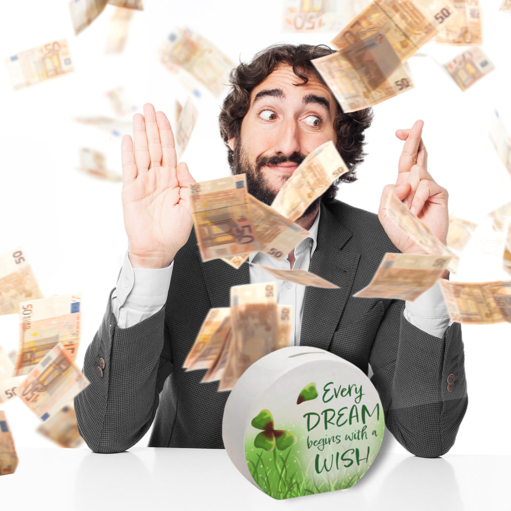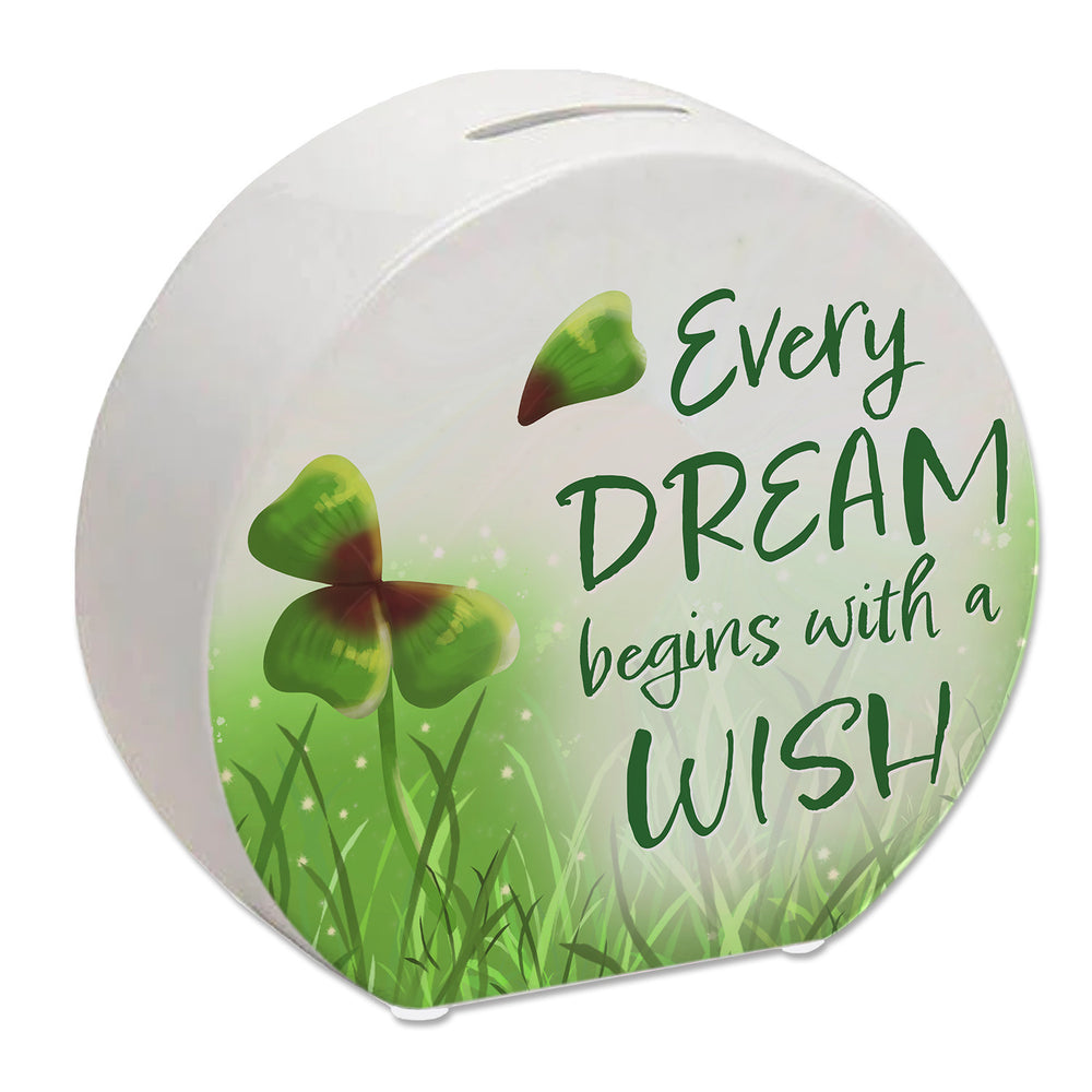 Every dream begins with a wish Kleeblatt Spardose - Keramik ist auf Lager und wird versandt, sobald es wieder verfügbar ist