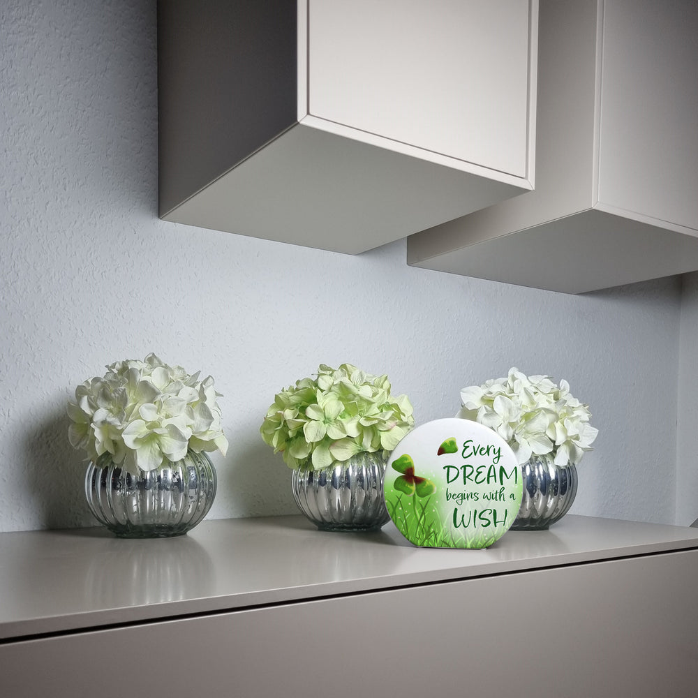 - 1x Every dream begins with a wish Kleeblatt Spardose in der gewählten Ausführung