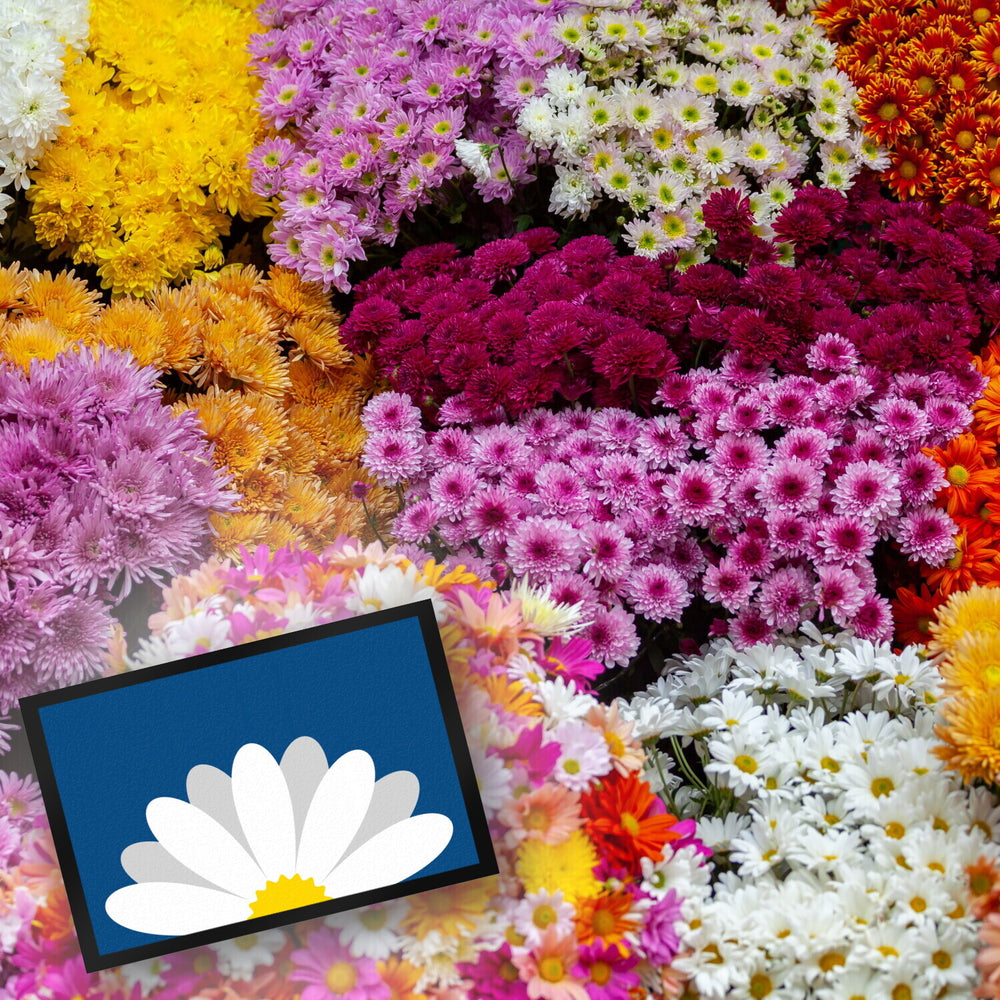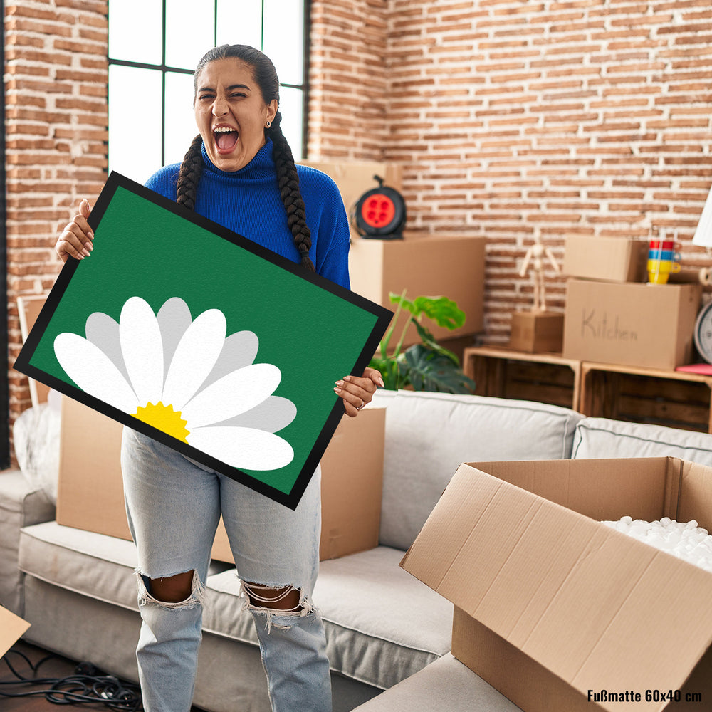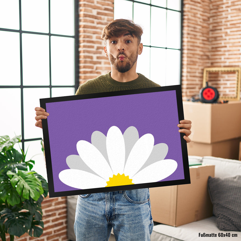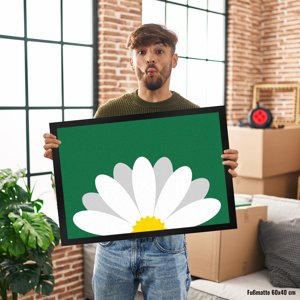 - Lassen Sie sich von dieser modernen Fußmatte verzaubern und begrüßen Sie Ihre Gäste mit einem herzlichen Willkommensgruß. Kaufen Sie jetzt die Gänseblümchen Fußmatte und machen Sie Ihren Eingangsbereich zu einem einladenden Ort!