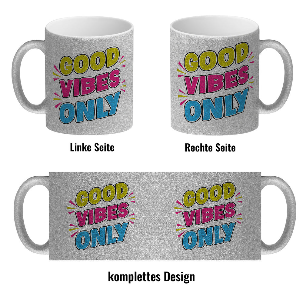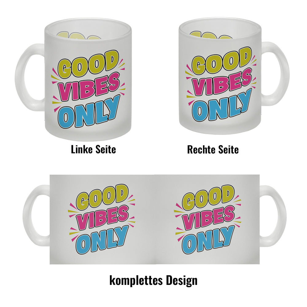 - 1x Good Vibes Only Kaffeebecher mit Spruch für Arbeitskollegen in der gewählten Ausführung