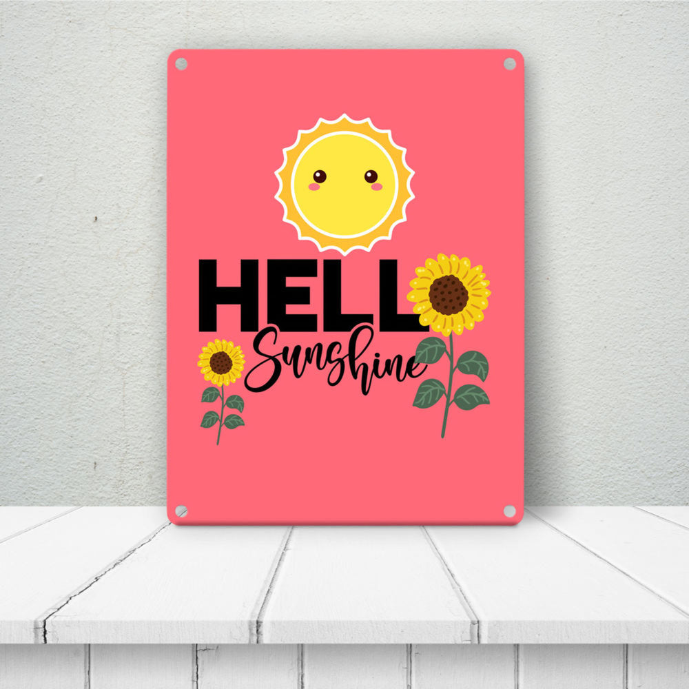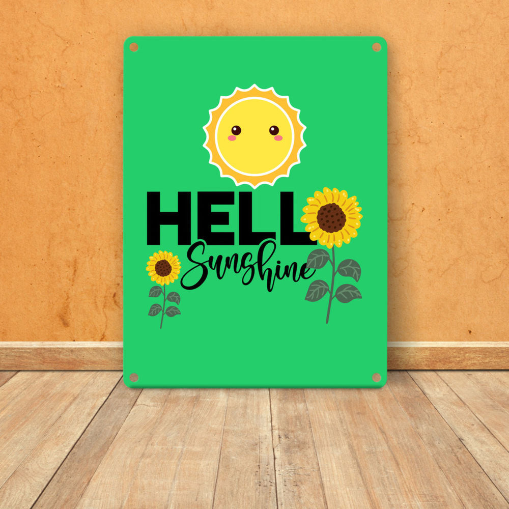 - 1x Gute Laune Metallschild in 15x20 cm mit Spruch Hello Sunshine in der gewählten Größe