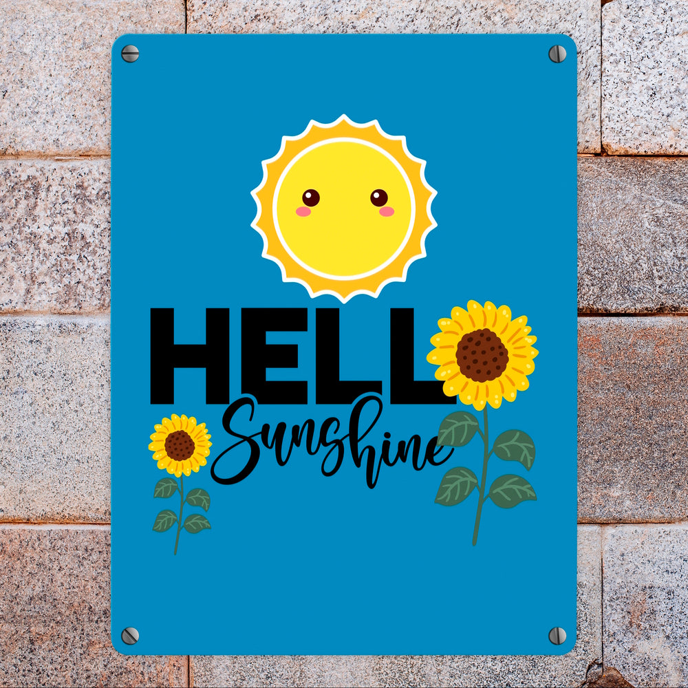 Gute Laune Metallschild in 15x20 cm mit Spruch Hello Sunshine - 15x20 cm / Blau ist auf Lager und wird versandt, sobald es wieder verfügbar ist
