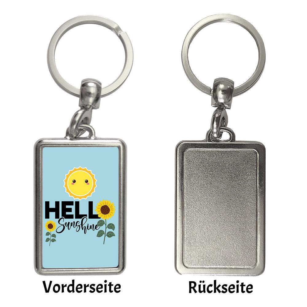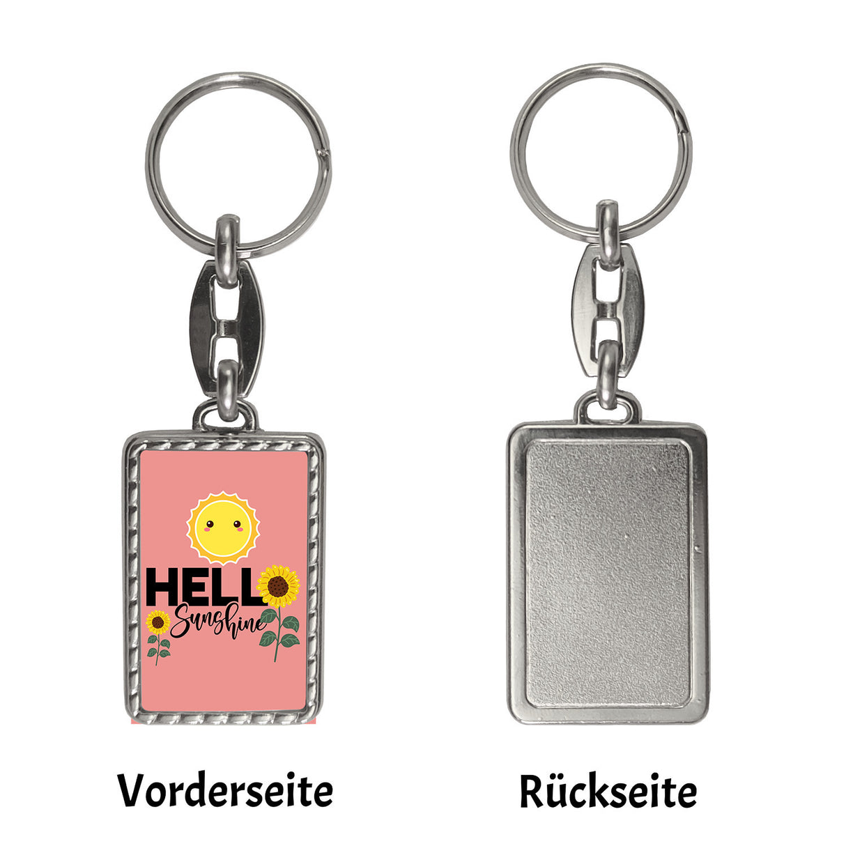 - 1x Gute Laune Schlüsselanhänger mit Spruch Hello Sunshine in der gewählten Ausführung