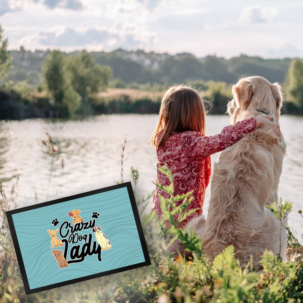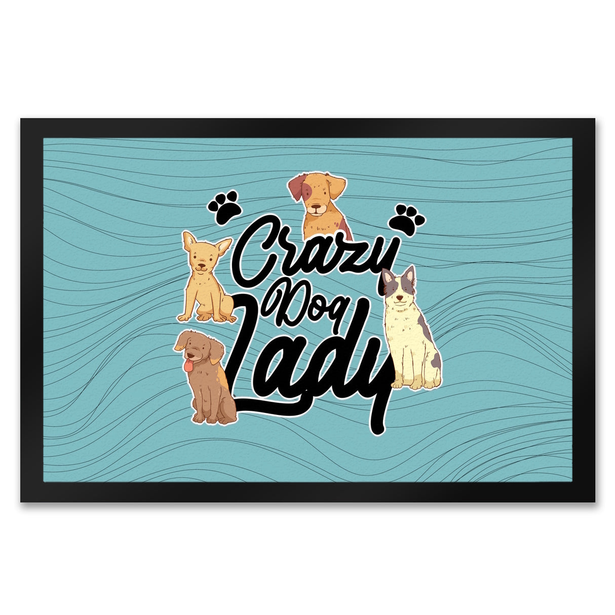 Hunde Fußmatte in 35x50 cm Crazy Dog Lady für Hundeliebhaber