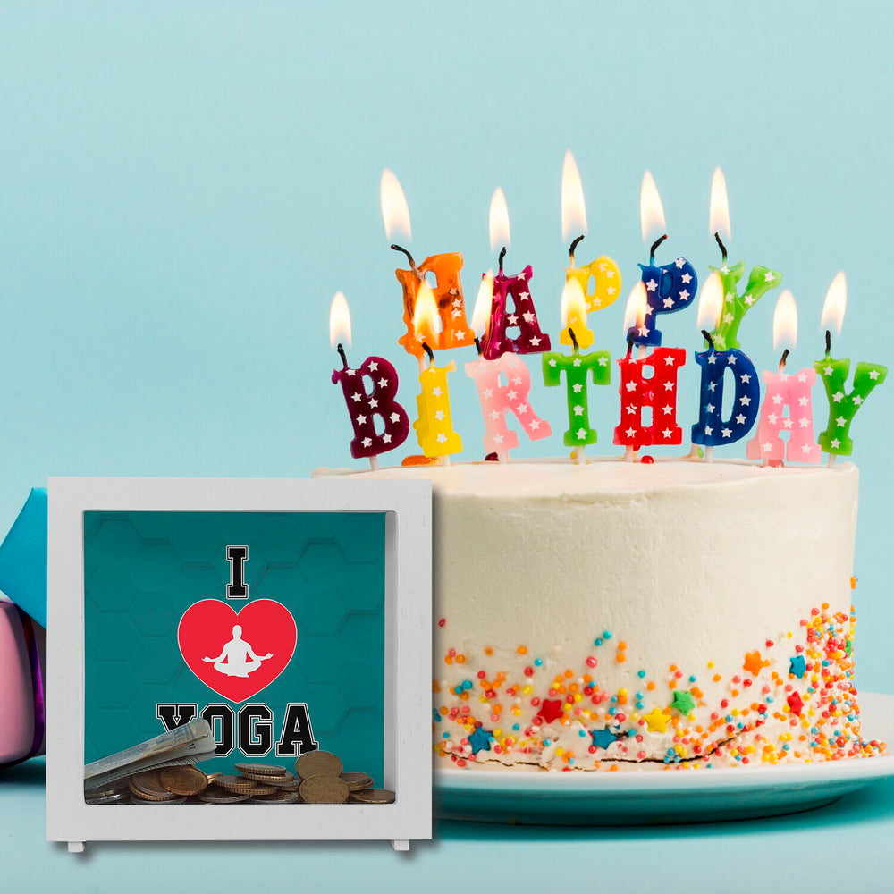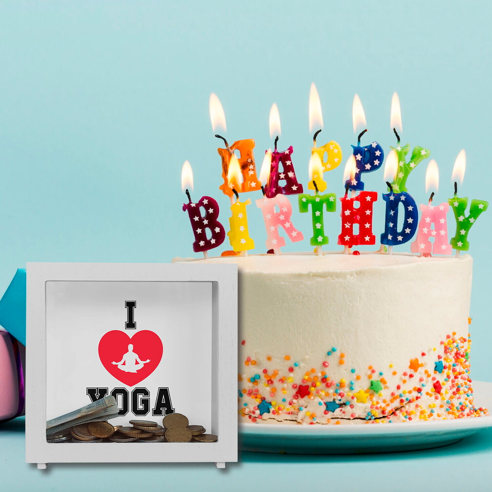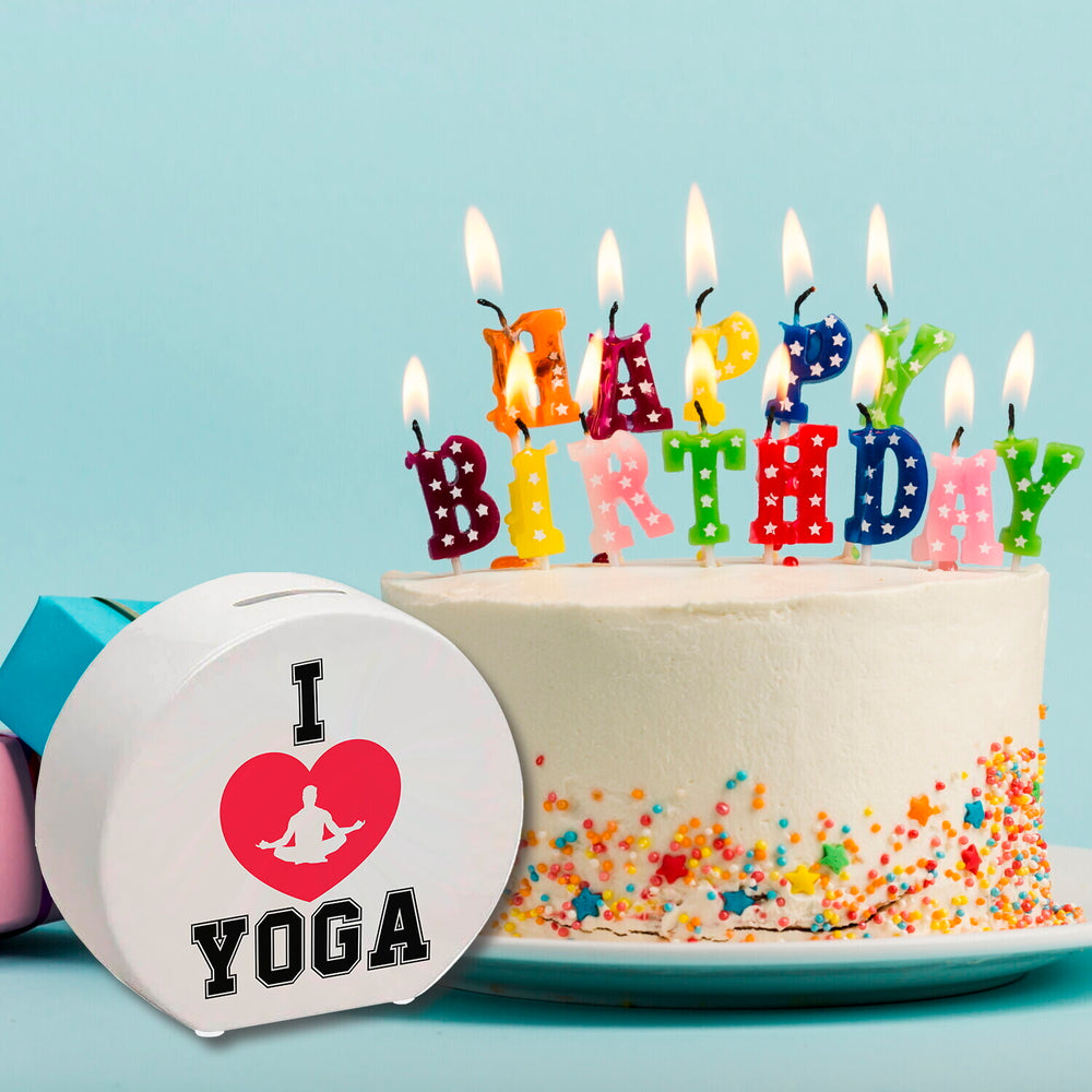 - Mit der dekorativen Spardose mit I love Yoga Motiv kannst du nicht nur Yogalehrer zu ihrem Geburtstag überraschen, sondern auch dein eigenes Zuhause verschönern.