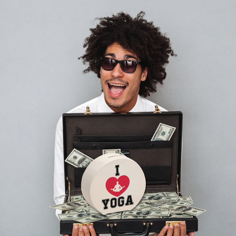 - 1x I love Yoga Spardose für Yogalehrer in der gewählten Ausführung