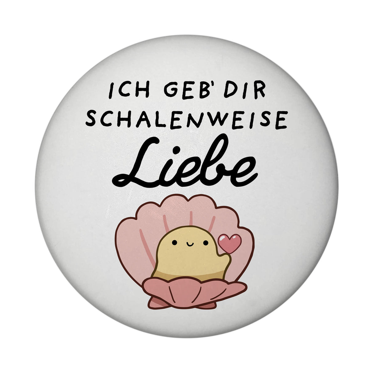 • 1x Jelly & Friends Muschel Magnet rund mit Spruch Ich geb‘ dir schalenweise Liebe in der gewählten Ausführung