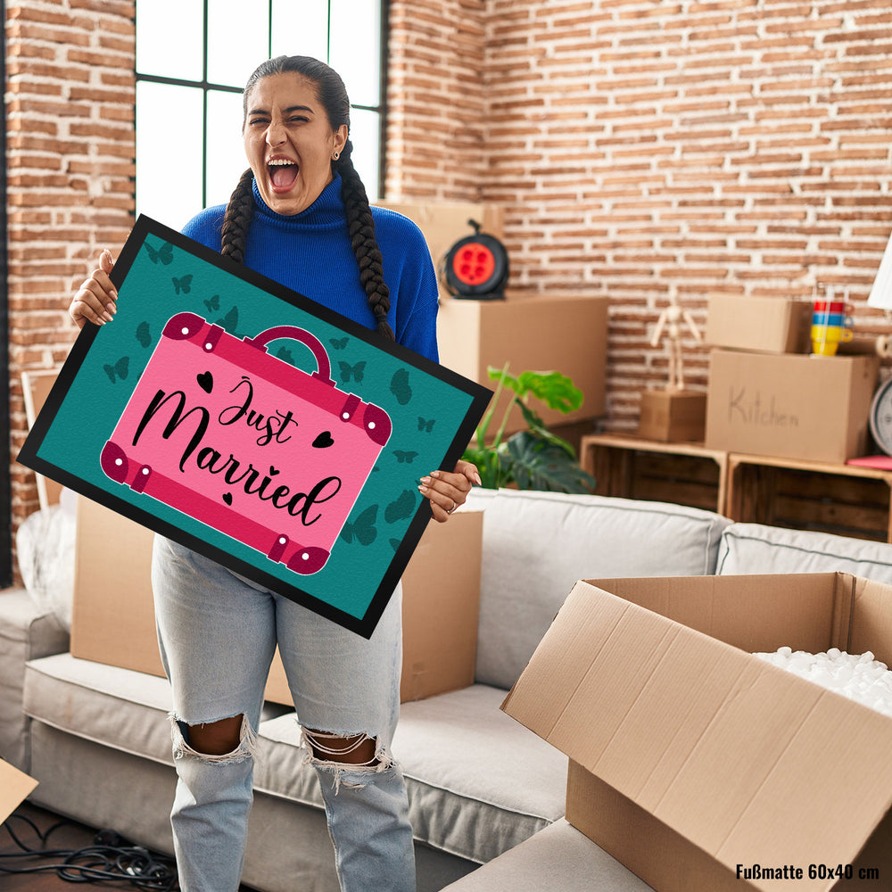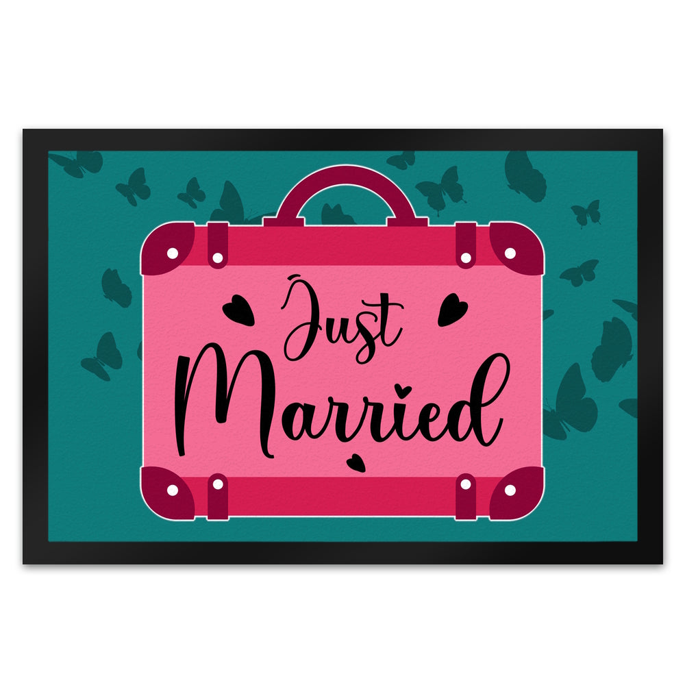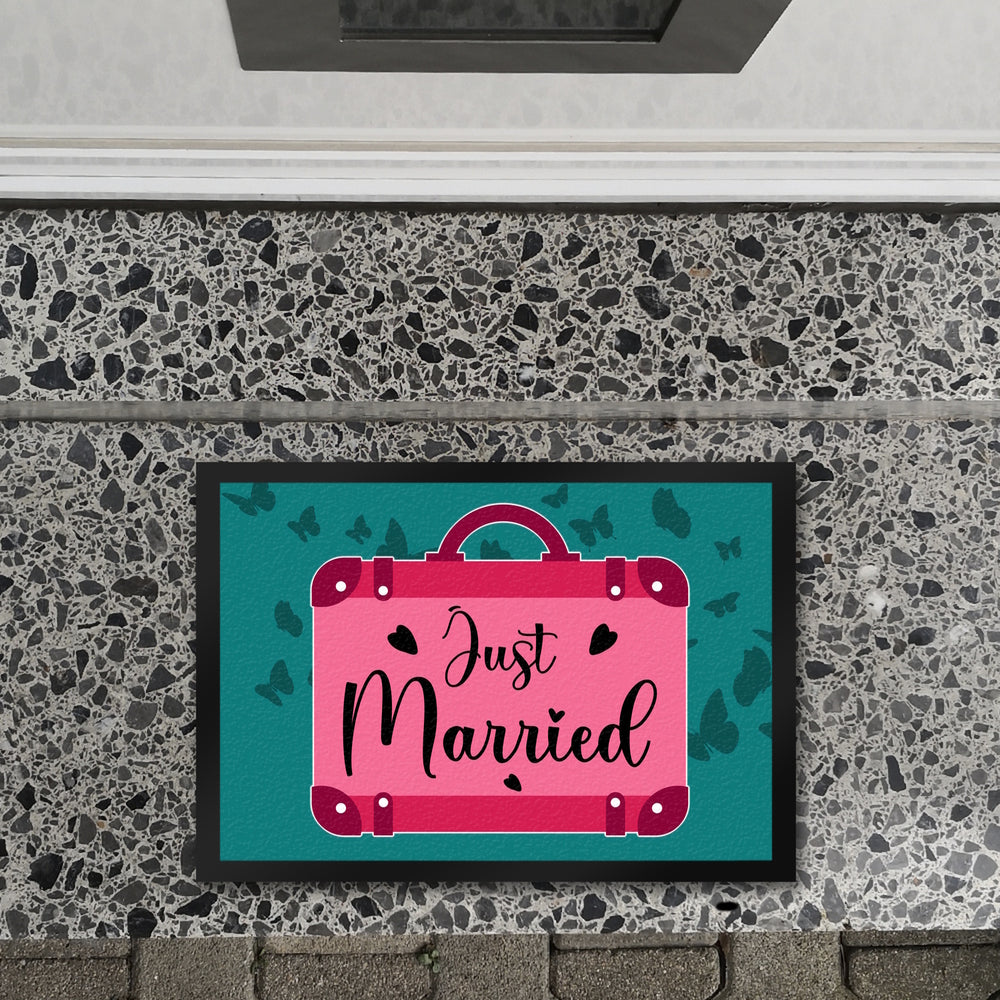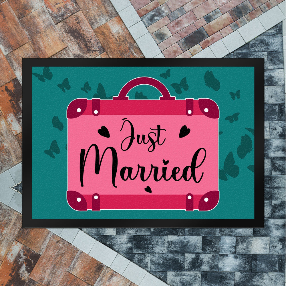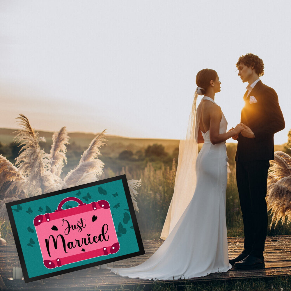 - Unsere dekorative Fußmatte mit "Just married" Motiv ist das perfekte Geschenk für Männer und Frauen, die gerade frisch getraut sind! Mit der Aufschrift „Just married“ können Sie Ihren Liebsten eine schöne Erinnerung an die romantische Trauung bereiten. Die Fußmatte gibt es in verschiedenen Größen und Ausführungen und eignet sich ideal, um Gäste an der Haustür zu begrüßen.