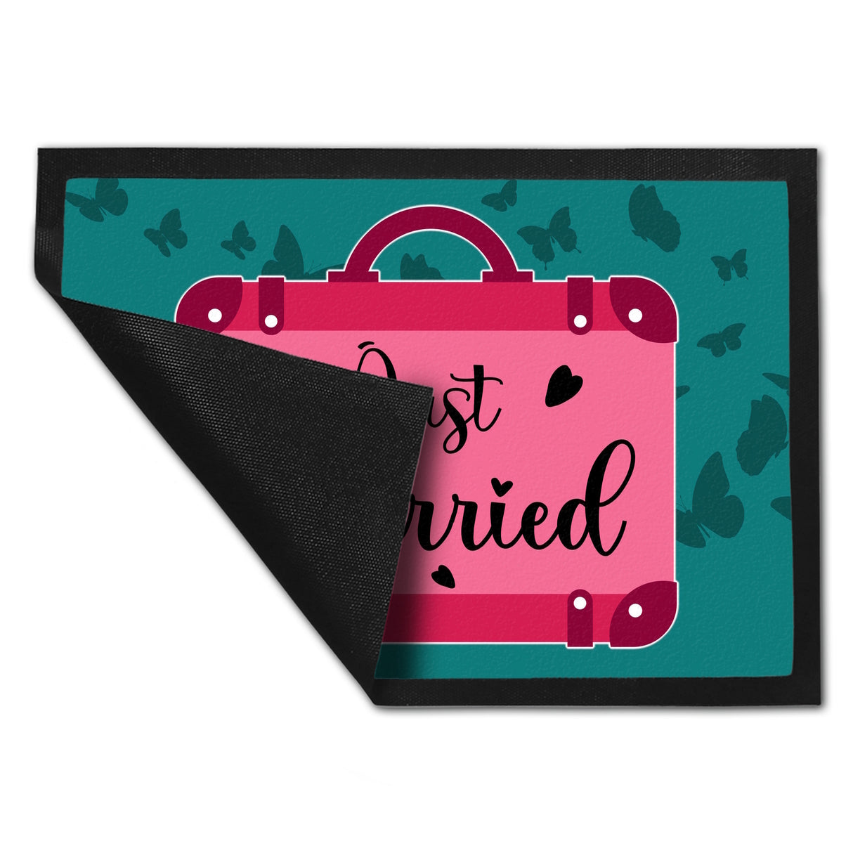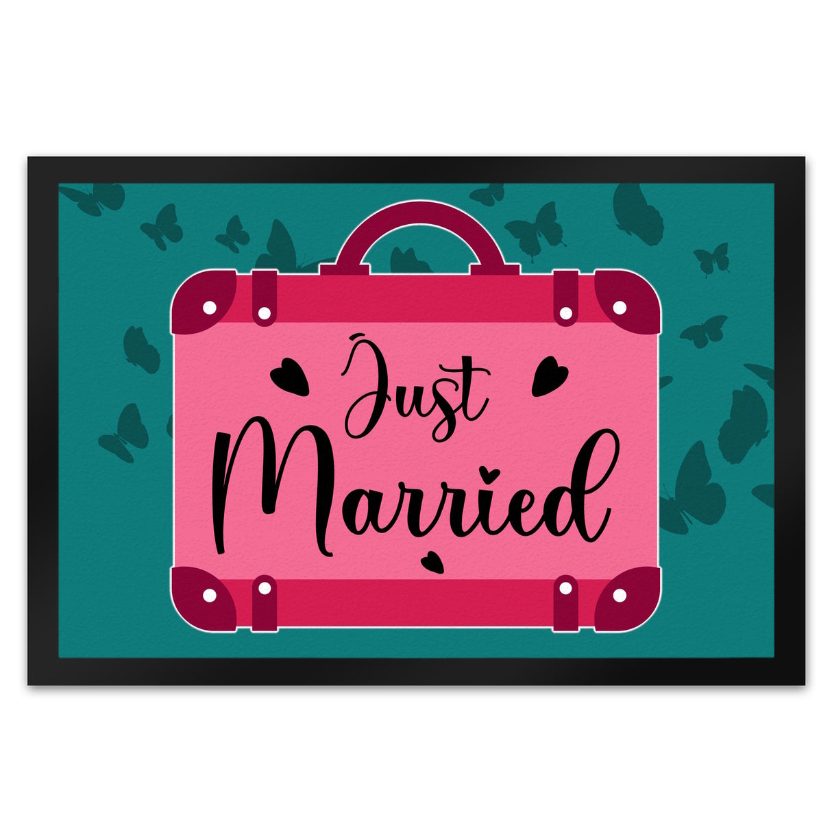 Just married Hochzeit Fußmatte in 35x50 cm mit pinkem Koffer - 50x35 cm ist auf Lager und wird versandt, sobald es wieder verfügbar ist