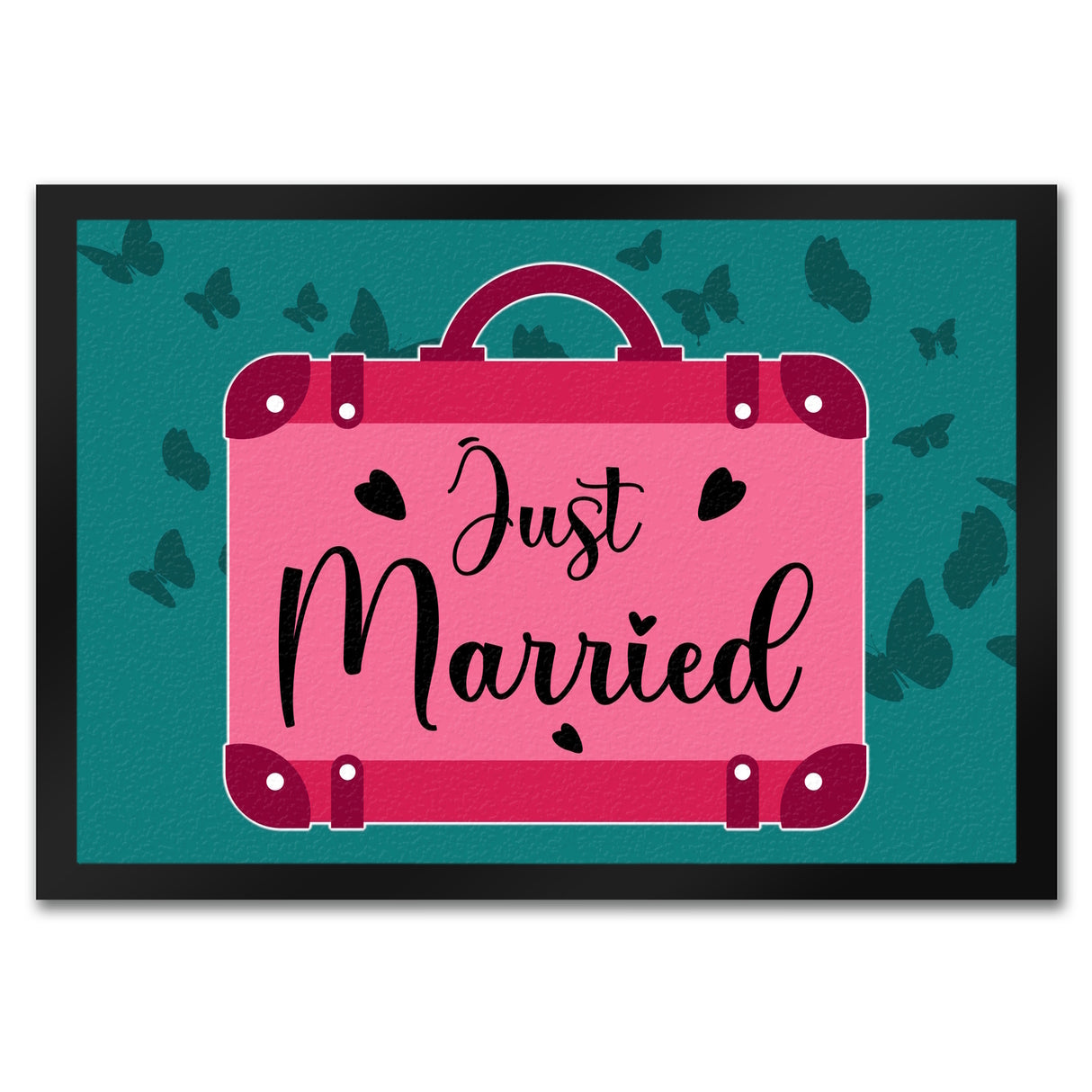 - 1x Just married Hochzeit Fußmatte in 35x50 cm mit pinkem Koffer in der gewählten Größe