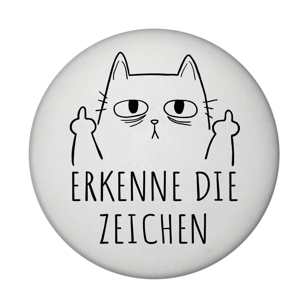 Katze mit Mittelfinger Magnet rund mit Spruch Erkenne die Zeichen
