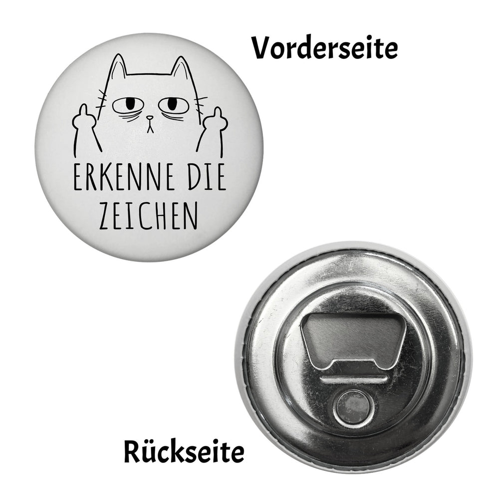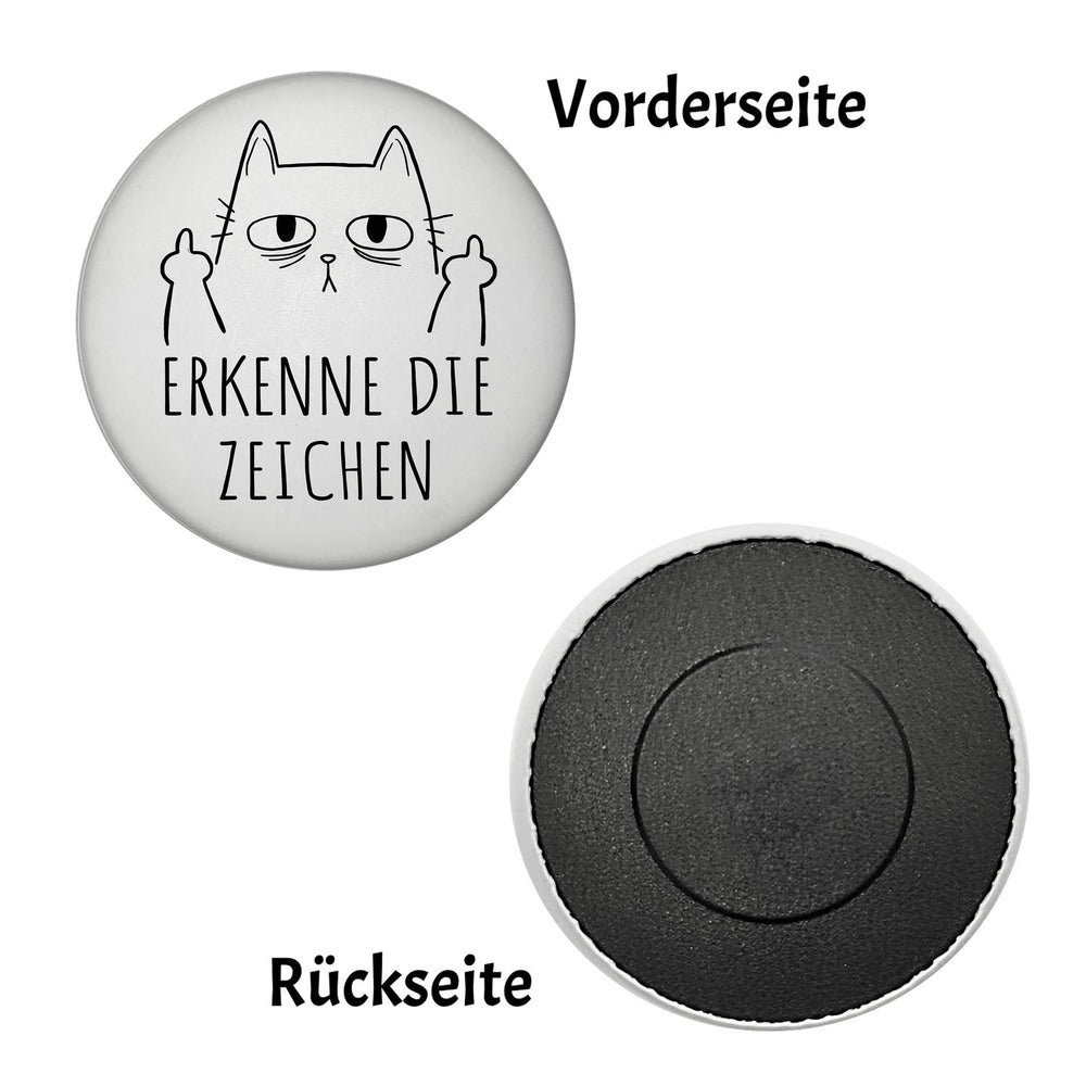 • 1x Katze mit Mittelfinger Magnet rund mit Spruch Erkenne die Zeichen in der gewählten Ausführung
