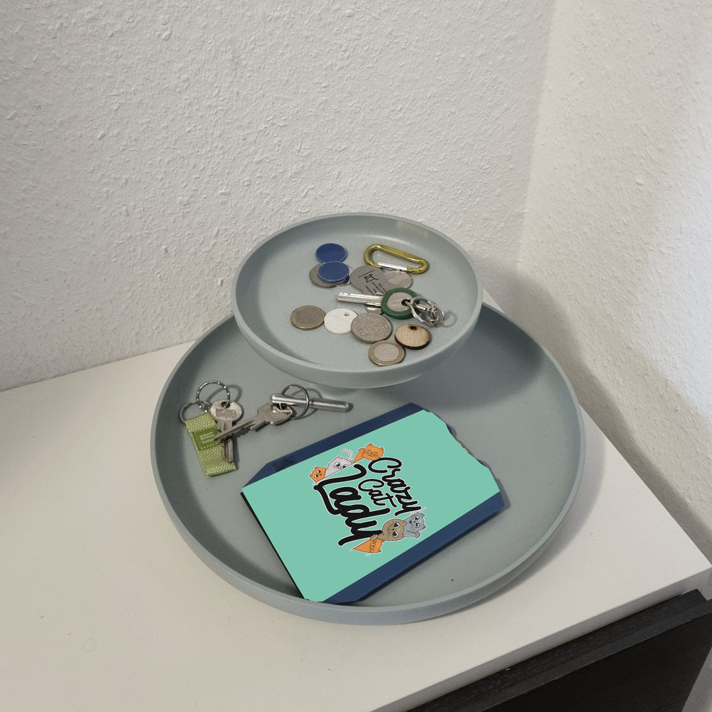 - Auf der Katzen-Parkscheibe steht der Schriftzug "Crazy cat Lady". Links und rechts von dem Schriftzug sind verschiedene Katzen abgebildet, die um eine Ecke schauen.
