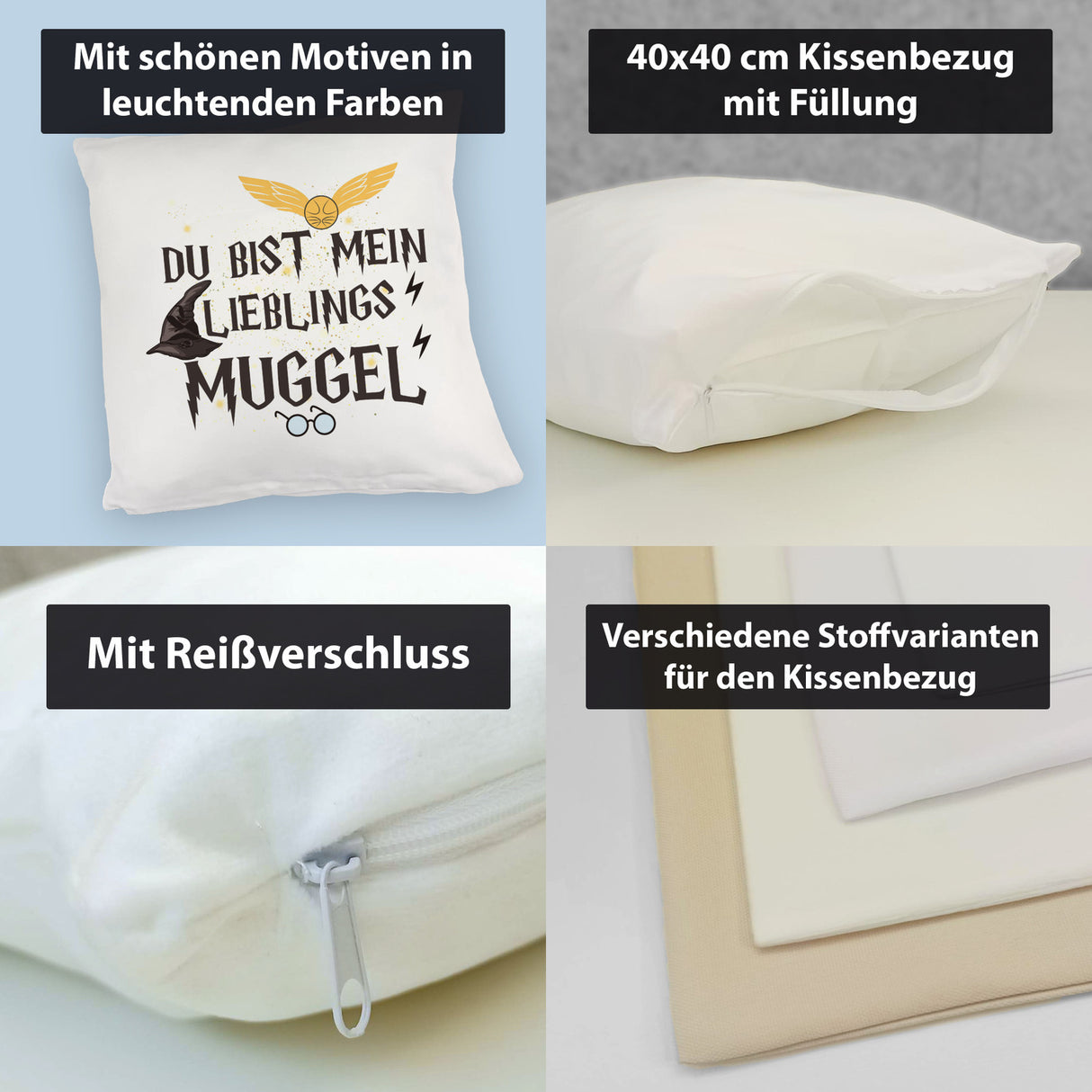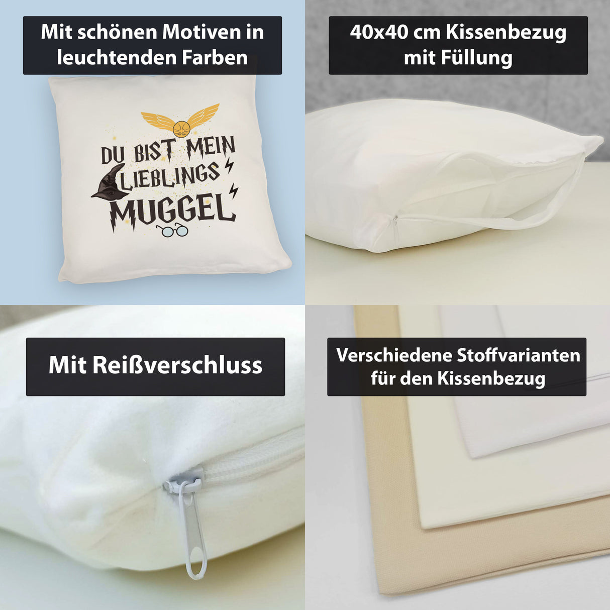 • 1x Lieblingsmuggel Kissen für Zauberschüler und Hexen in der gewählten Ausführung