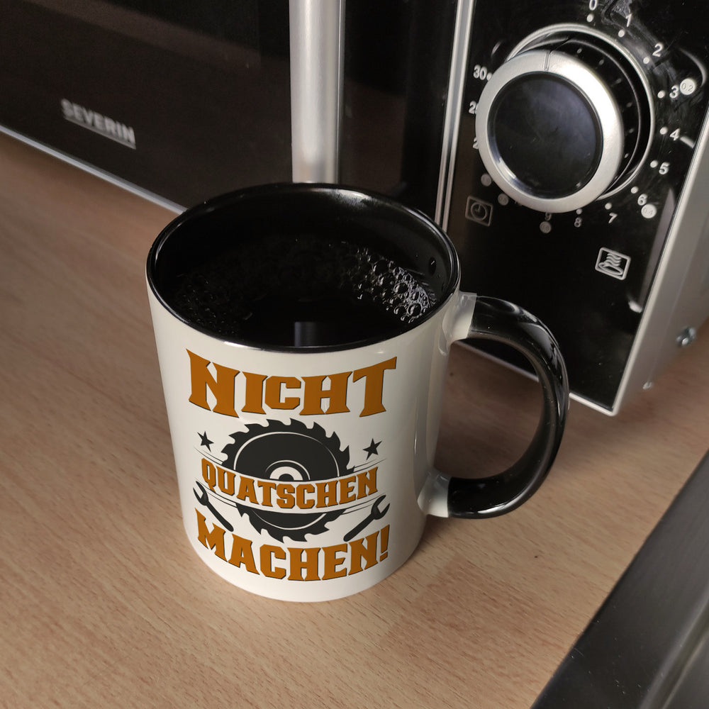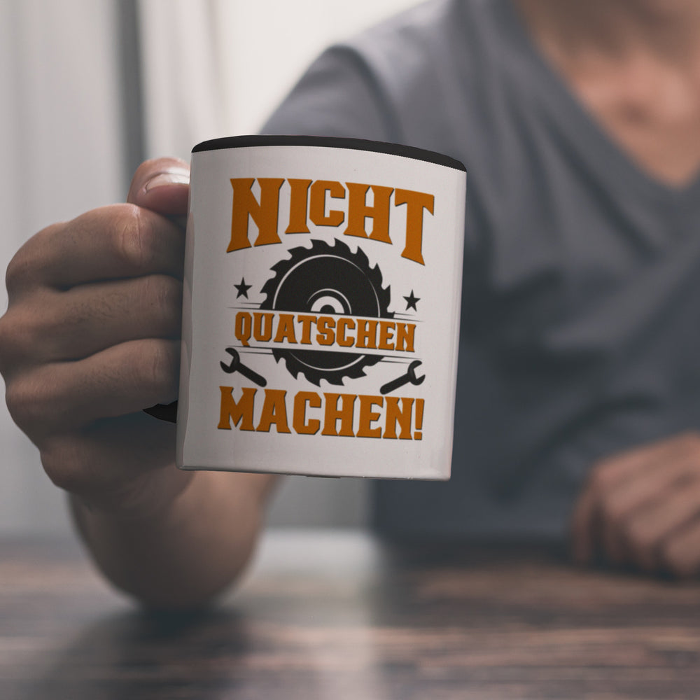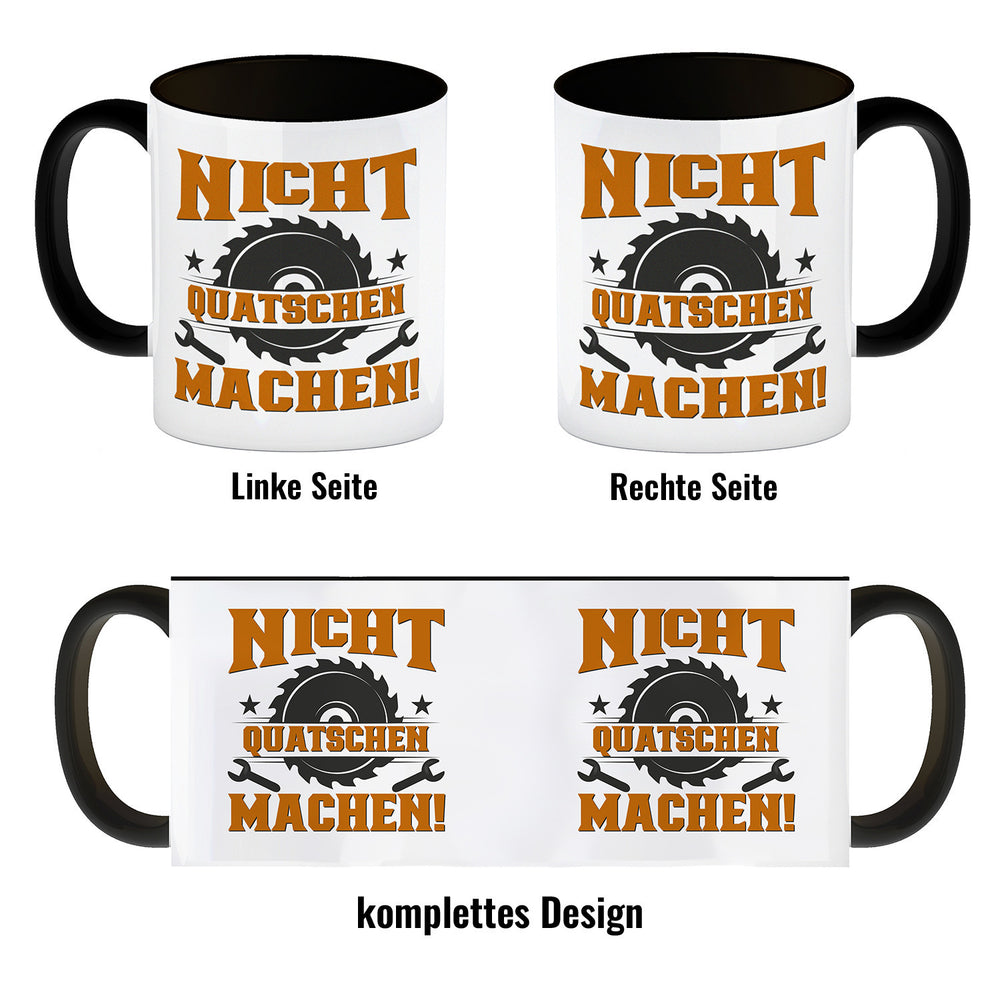- Mit unserem originellen „Nicht Quatschen. Machen!" Kaffeebecher schenken Sie jedem Schreiner den perfekten Geburtstagsgruß! Durch ein Sägeblatt im Hintergrund und dem Spruch auf der Vorderseite wird angedeutet, dass mit Holz arbeiten mehr als nur Reden bedeutet - es ist Tatkraft gefragt! Mit dieser Kaffeetasse sind alle Tischler und Handwerker bestens gerüstet für anstehende Projekte.
