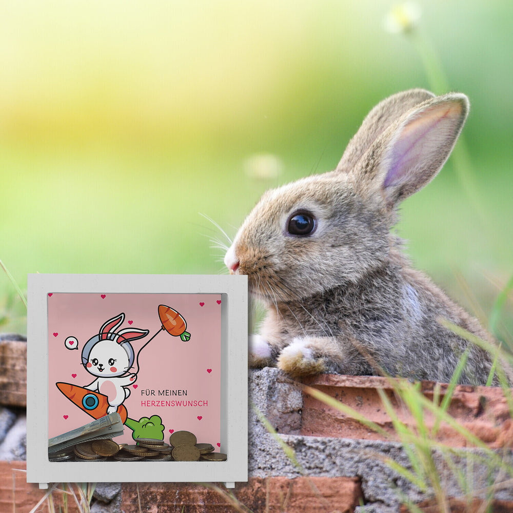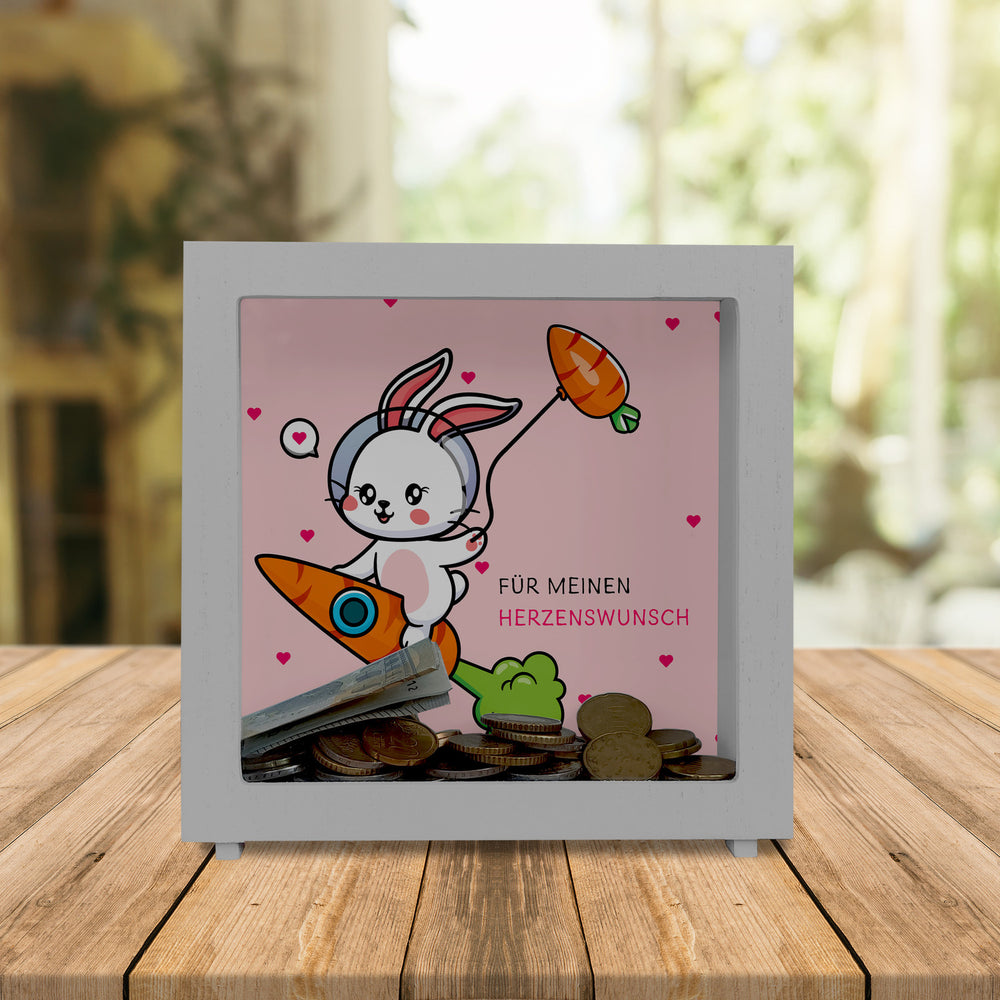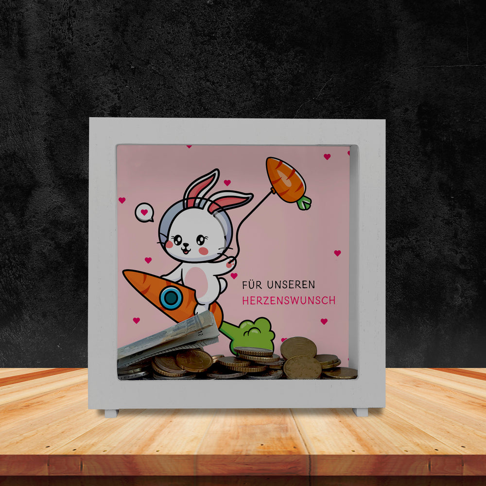 Niedliche Spardose mit Häschen Motiv - Für meinen Herzenswunsch