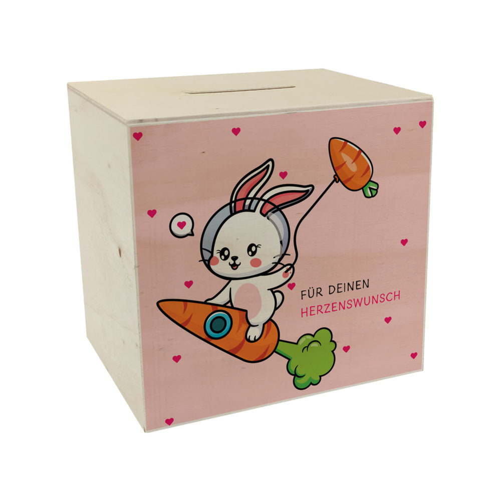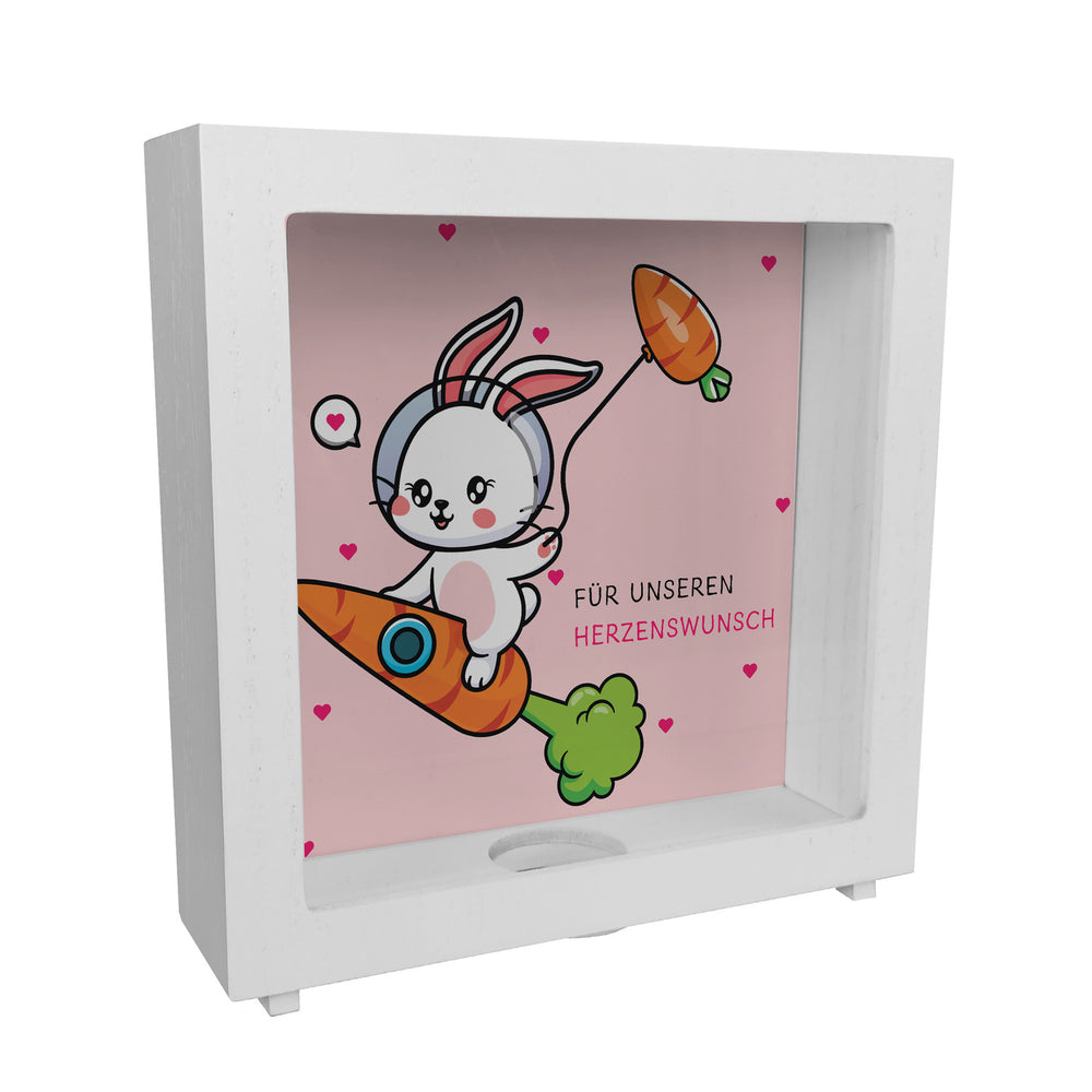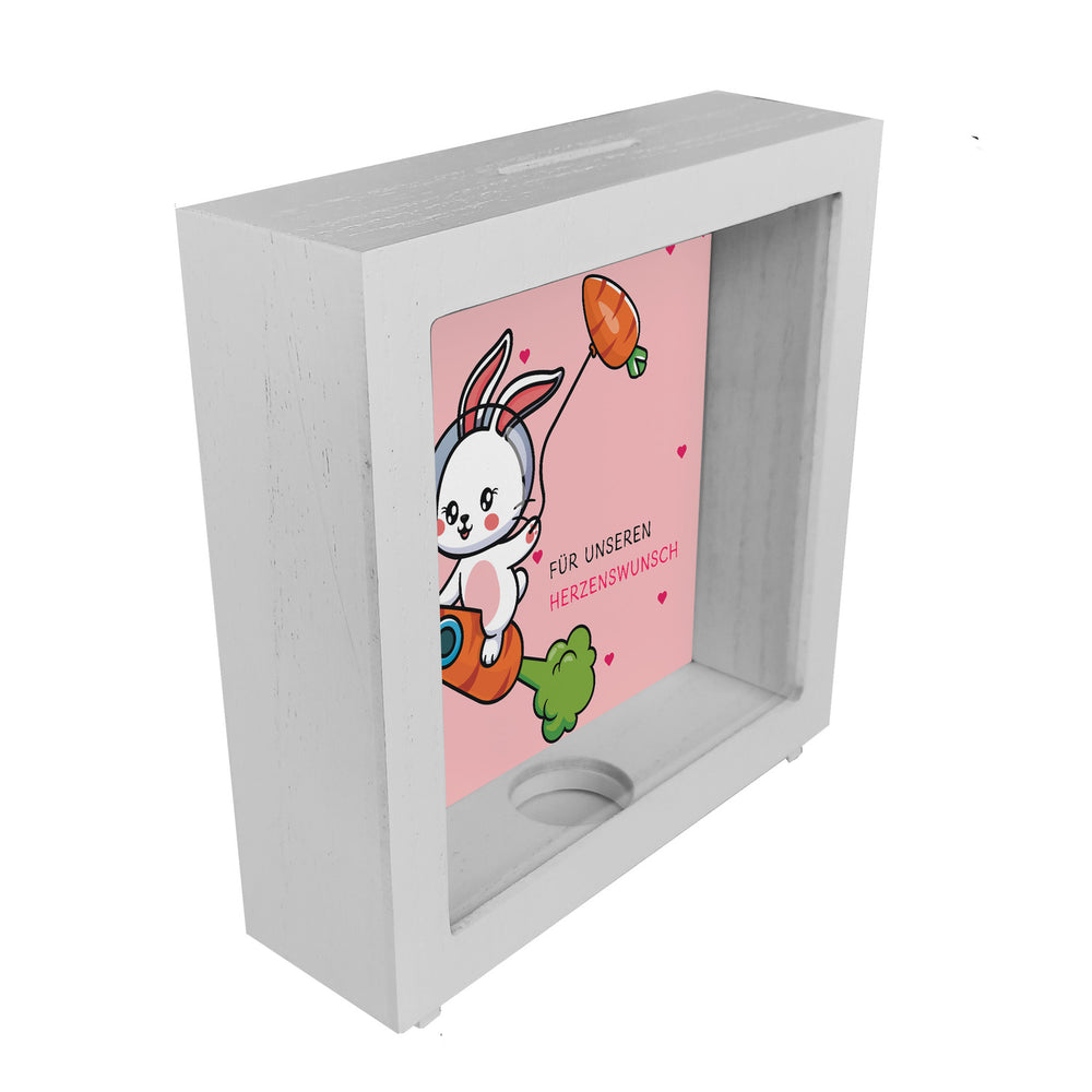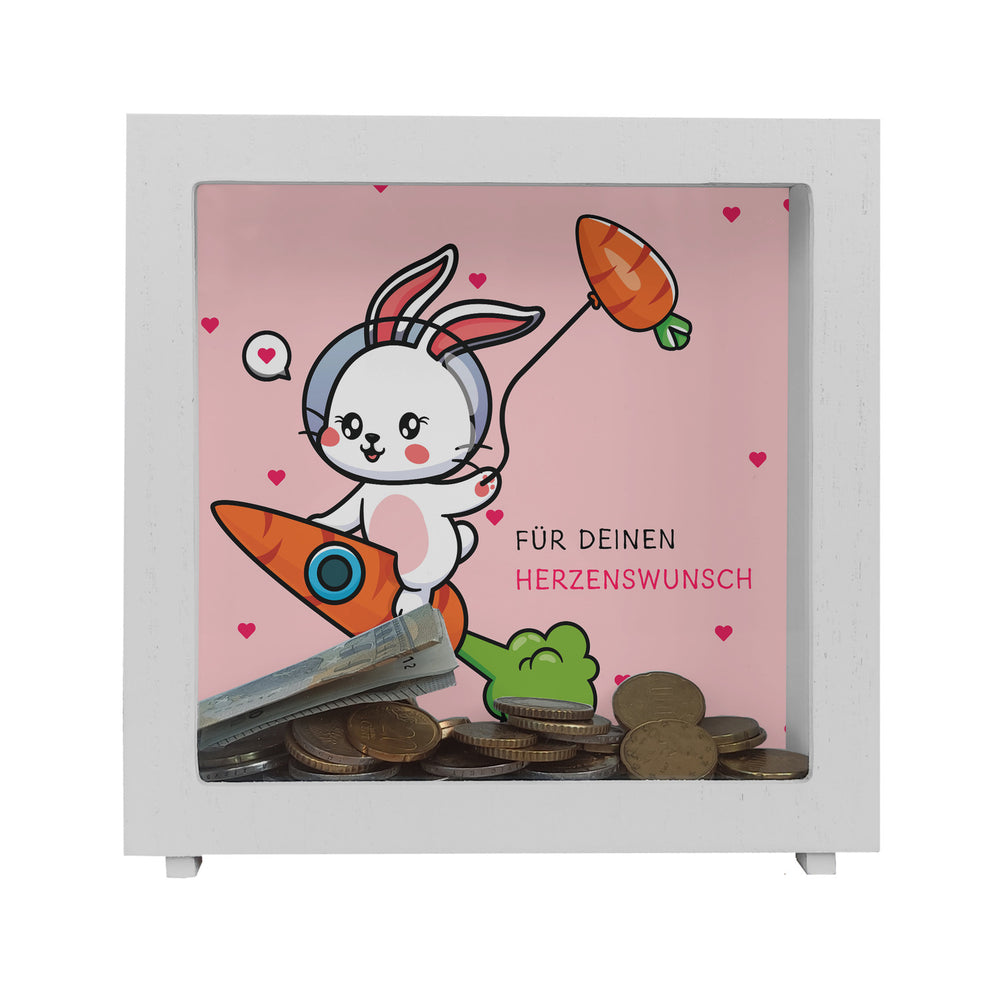 - 1x Niedliche Spardose mit Häschen Motiv - Für meinen Herzenswunsch in der gewählten Ausführung
