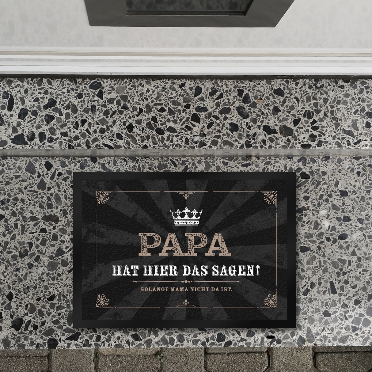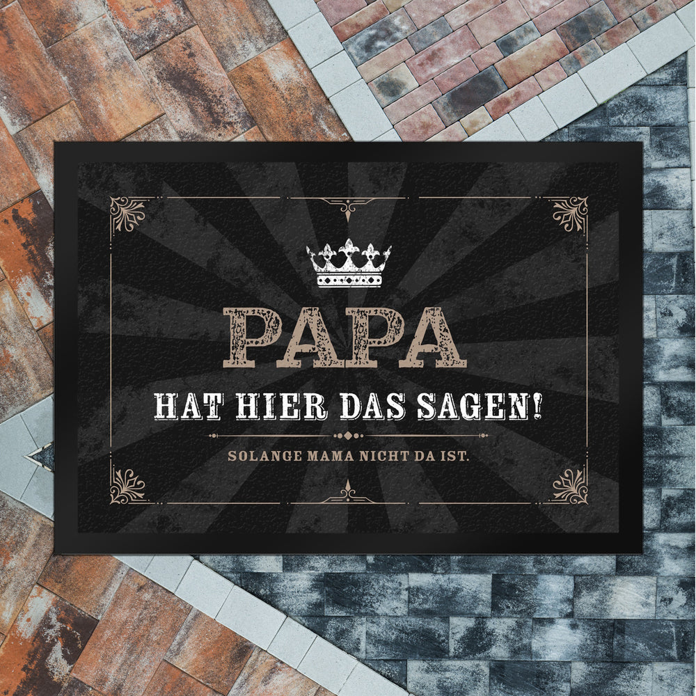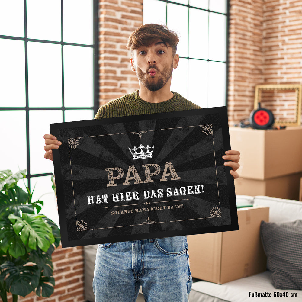 - 1x Papa hat hier das Sagen! Solange Mama nicht da ist Fußmatte mit Krone in der gewählten Größe
