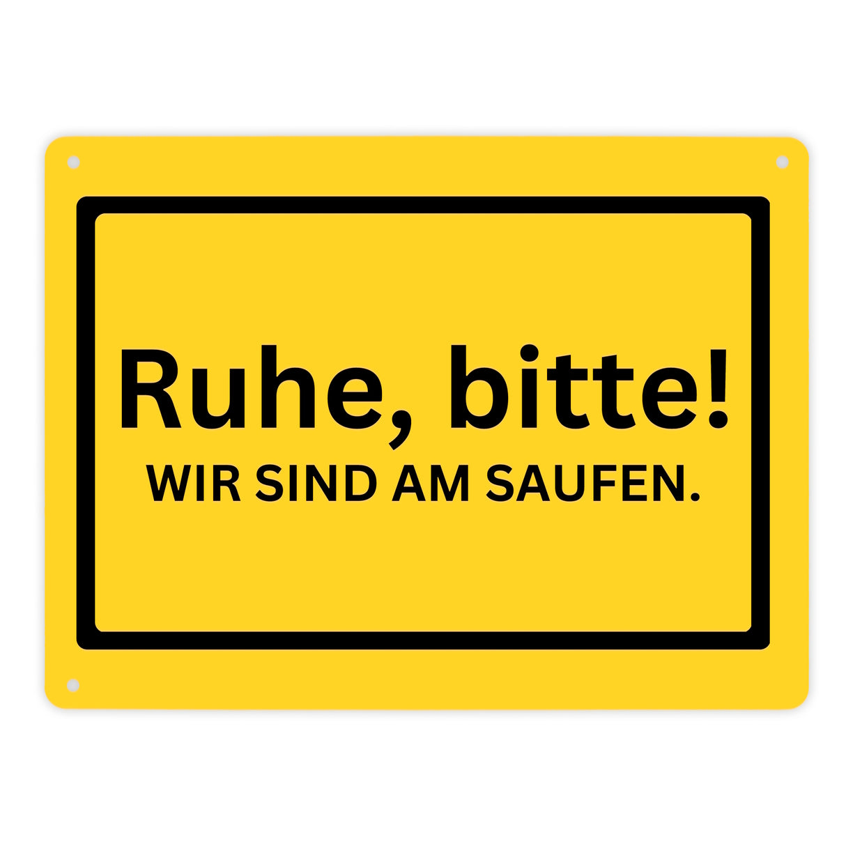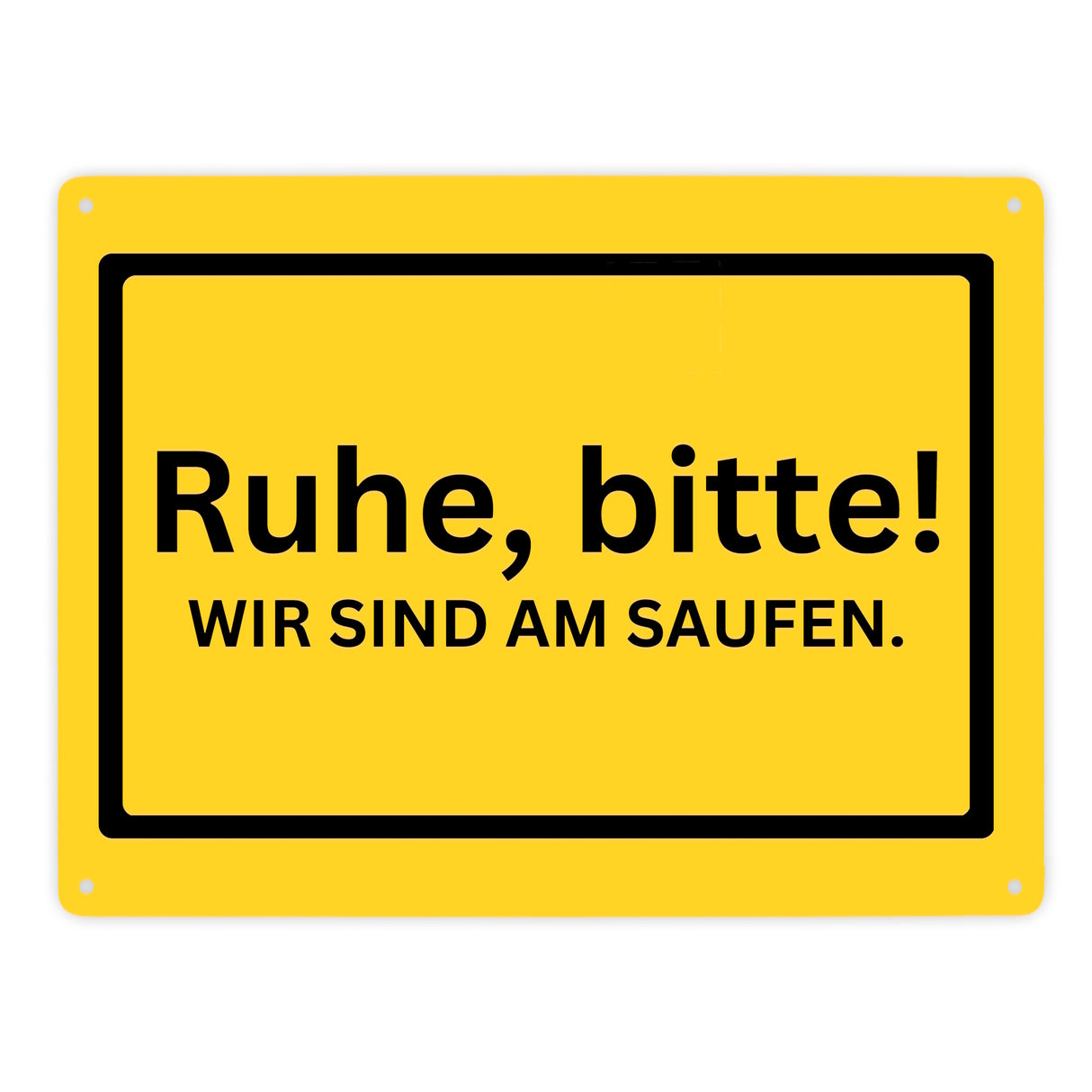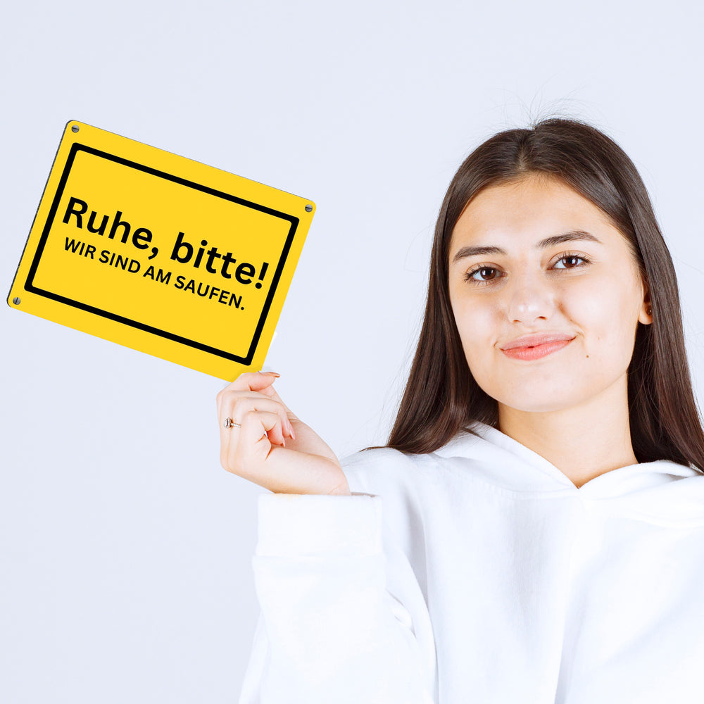 • Sichern Sie sich jetzt dieses tolle Metallschild und bringen Sie sich und Ihren Freunden die nötige Ruhe und die nötige Partystimmung! Jetzt das Metallschild kaufen und jede Feierlichkeit mit dem Spruch "Ruhe, bitte! Wir sind am saufen." beginnen.