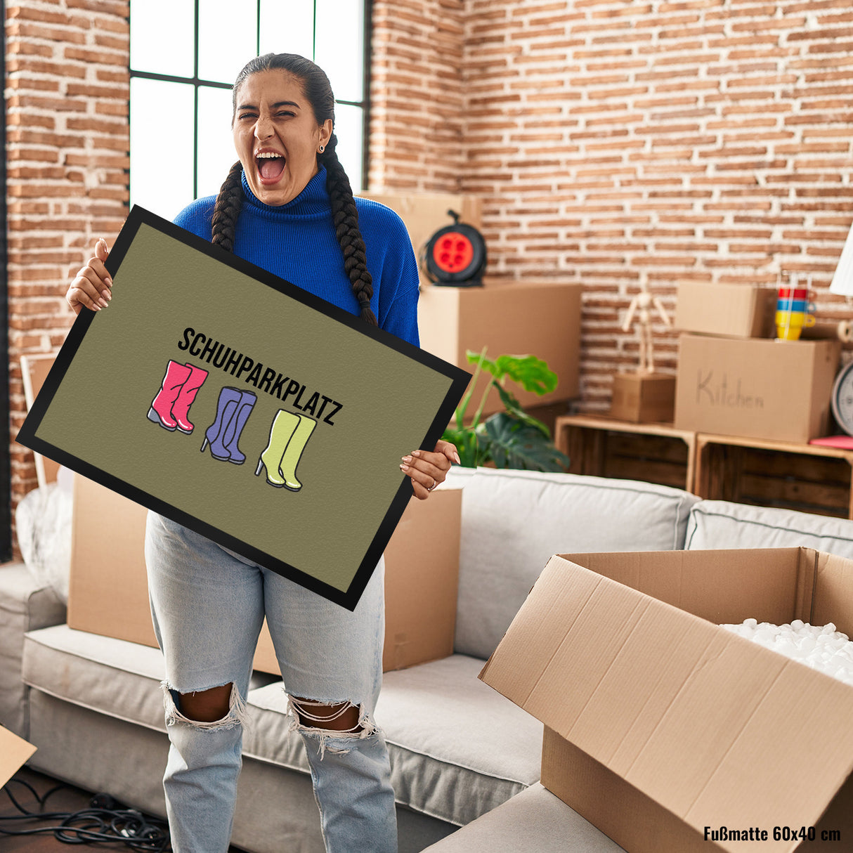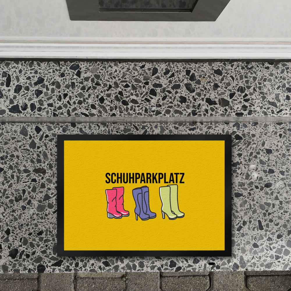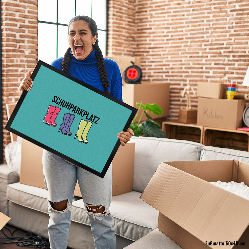 • Unsere dekorative Fußmatte mit Schuhparkplatz-Motiv ist das perfekte Geschenk für eine Frau zum Geburtstag. Der Artikel zeigt einen gut sichtbaren Schriftzug sowie schicke Frauenschuhe! Unsere Fußmatten kommen in verschiedenen Größen und Designs, sodass man die optimale Auswahl treffen kann.