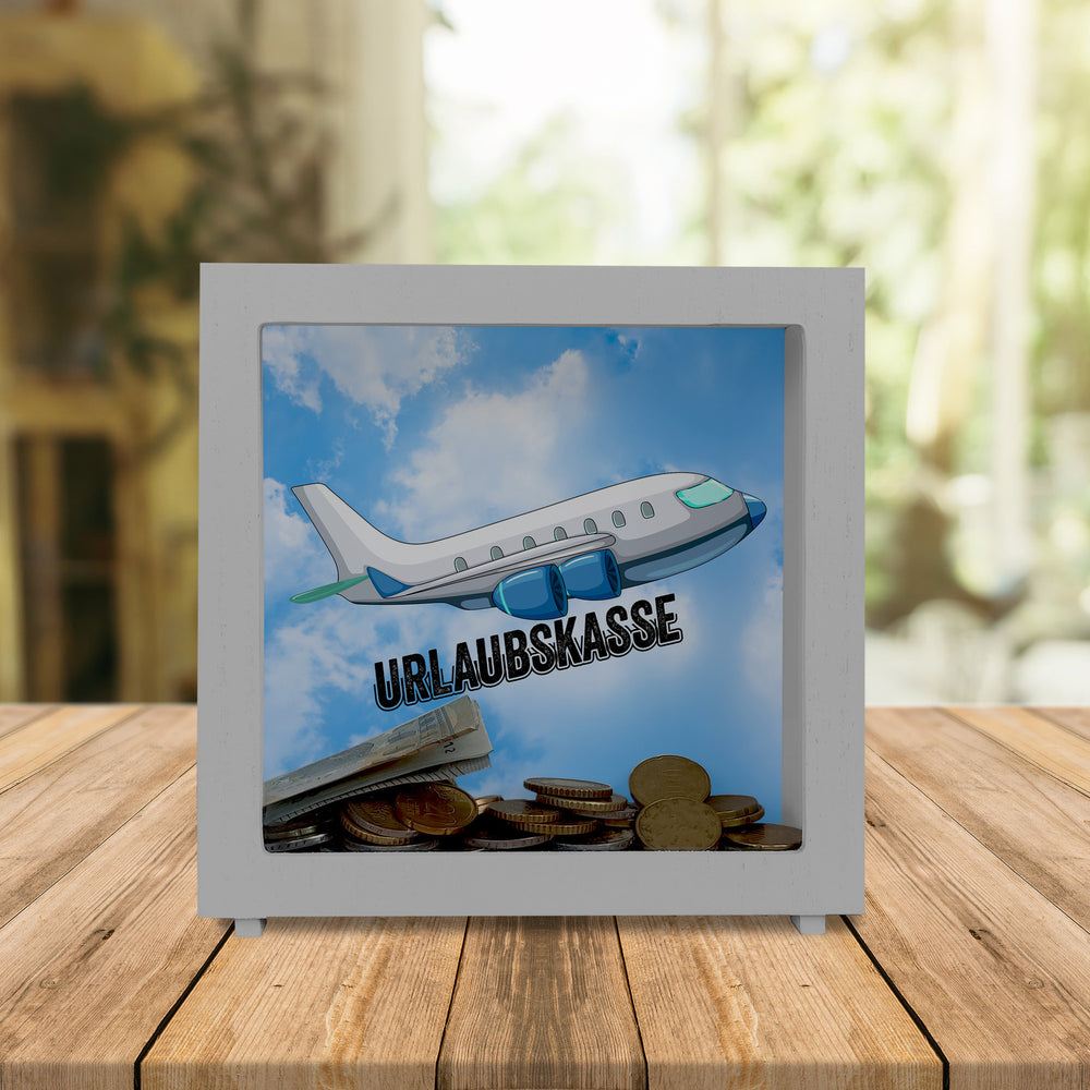 • 1x Urlaubskasse Flugzeug Spardose in der gewählten Ausführung