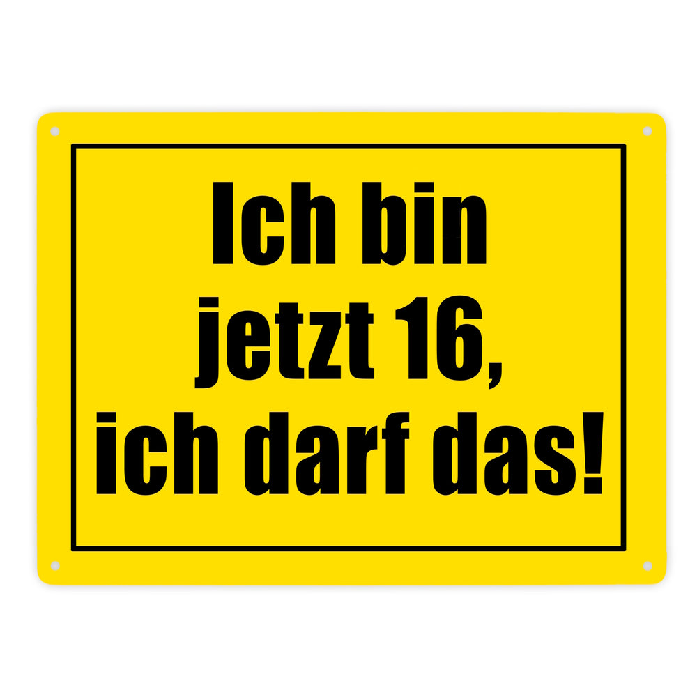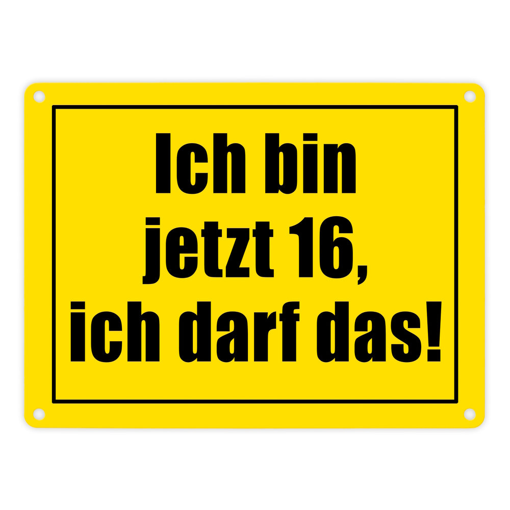 - 1x Warnschild Metallschild in 15x20 cm mit Spruch Ich bin jetzt 16 ich darf das in der gewählten Größe