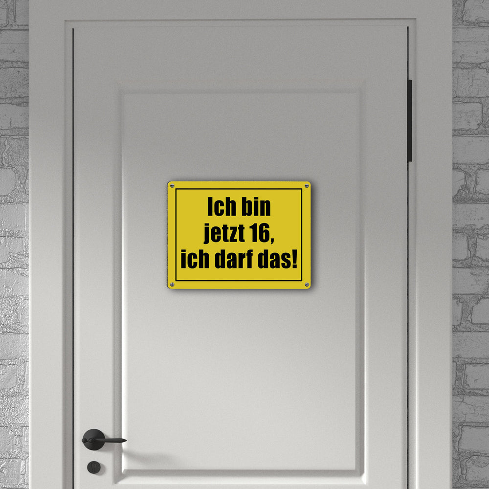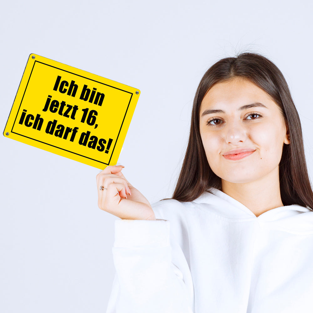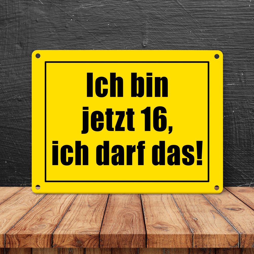 Warnschild Metallschild in 15x20 cm mit Spruch Ich bin jetzt 16 ich darf das - 15x20 cm ist auf Lager und wird versandt, sobald es wieder verfügbar ist
