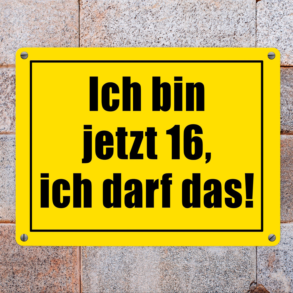 Warnschild Metallschild in 15x20 cm mit Spruch Ich bin jetzt 16 ich darf das
